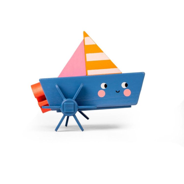 Maak van badtijd een avontuur! Trek aan het koord en zie hoe deze houten opwindboot door het water zoeft terwijl de propellers draaien.