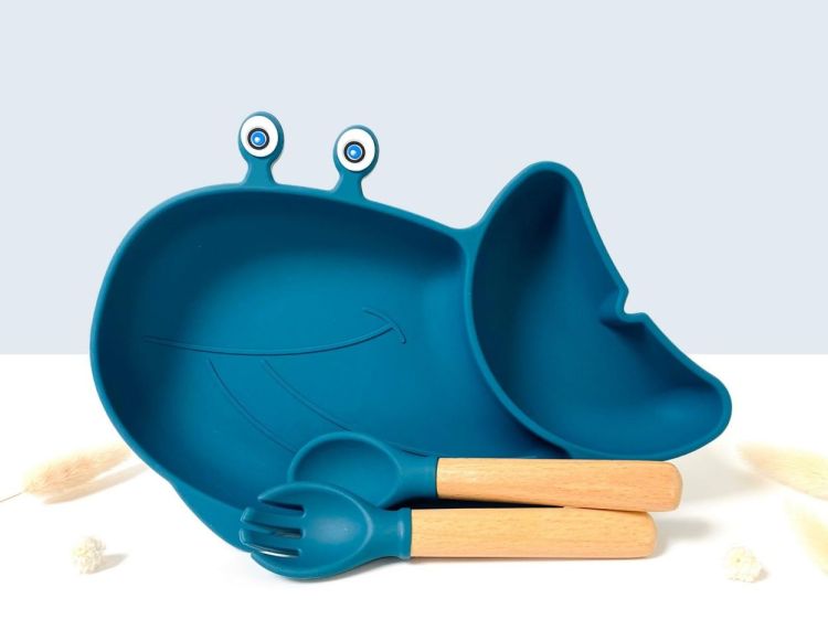 Siliconen bord met bestek Krab