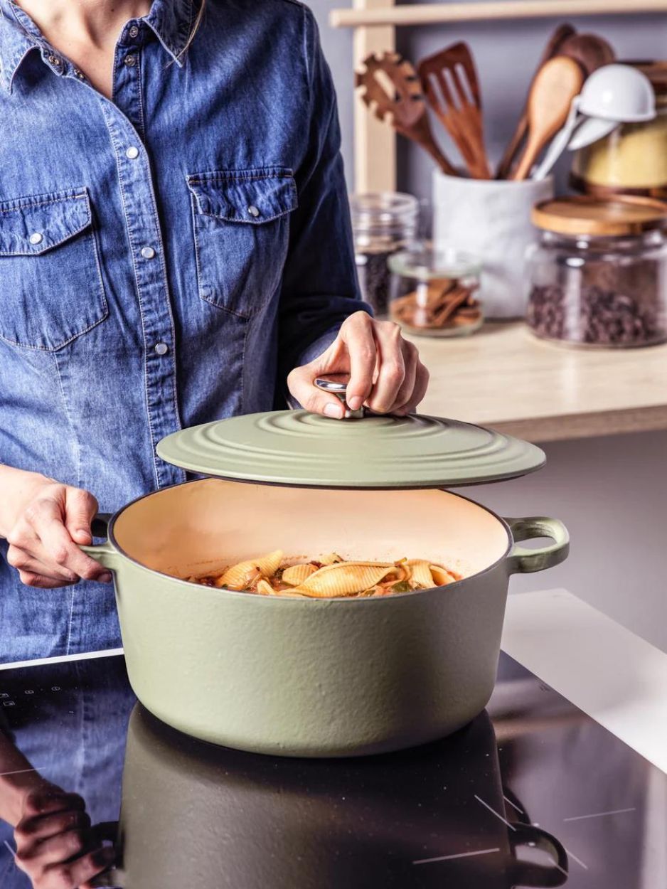 Geschikt voor alle warmtebronnen, inclusief inductie, én ovenbestendig tot 230°C. Zonder antiaanbaklaag, want het natuurlijke gietijzer zorgt zelf voor die karaktervolle smaak en een prachtige korst.