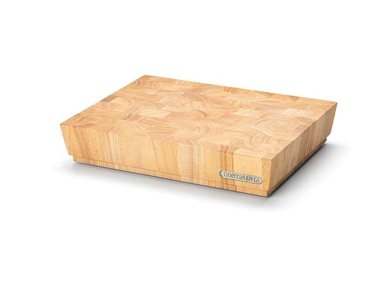 Compact maar bijzonder stevig hakblok van massief rubberboomhout, ontworpen voor dagelijks intensief gebruik. De dikke constructie en het duurzame kopshout zorgen voor een lange levensduur en optimale snijprestaties.