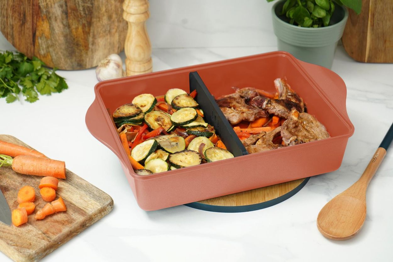 Een slimme, duurzame ovenschaal die zich aanpast aan jou en je keuken – van kleine porties tot royale ovenschotels.
