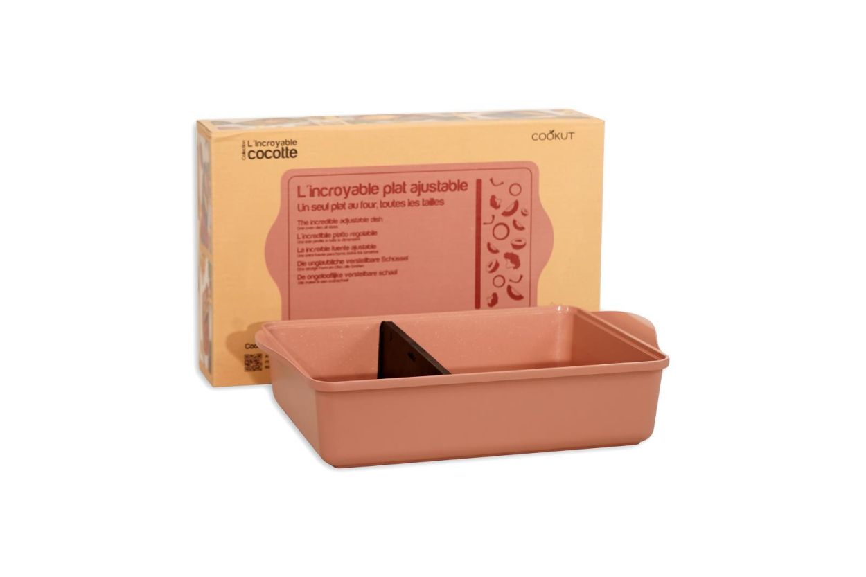 Eén ovenschaal voor álle gerechten. Met de L’Incroyable ovenschaal heb je geen stapel verschillende formaten meer nodig. Dankzij de inbegrepen, gepatenteerde scheidingswand pas je de grootte van de schaal eenvoudig aan: van een klein gratintje tot een grote familiemaaltijd.