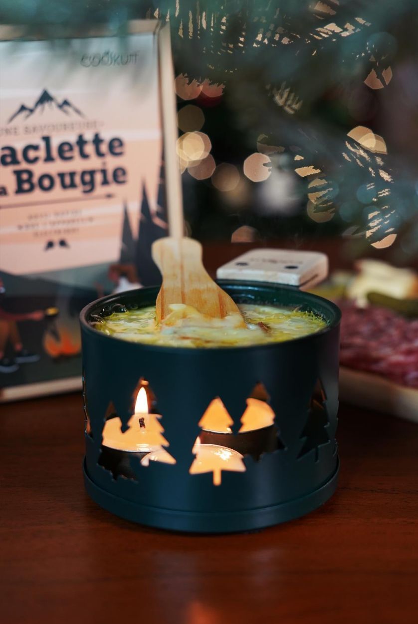 Gezelligheid in een compact jasje! Met de Cookut Raclette met theelichtjes smelt je kaas eenvoudig bij kaarslicht – net zo snel als met een klassiek elektrisch toestel, maar zonder snoeren of stopcontact.