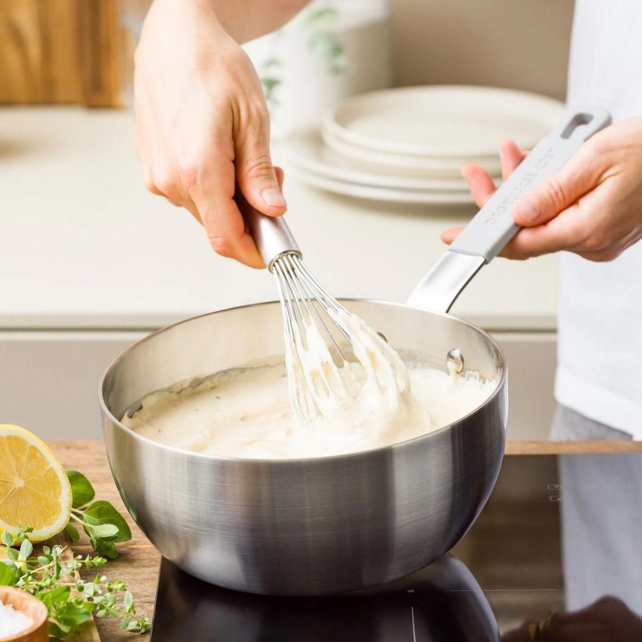 De conische sauspan Proline 3PLY 20 cm uit de Dagelijkse Kost-collectie laat je koken met de kracht van professioneel roestvrij staal. De 3-laagse constructie met aluminium kern zorgt voor een perfecte warmteverdeling en een snelle, nauwkeurige temperatuurcontrole. Ideaal voor sauzen en dagelijkse bereidingen met maximale controle.