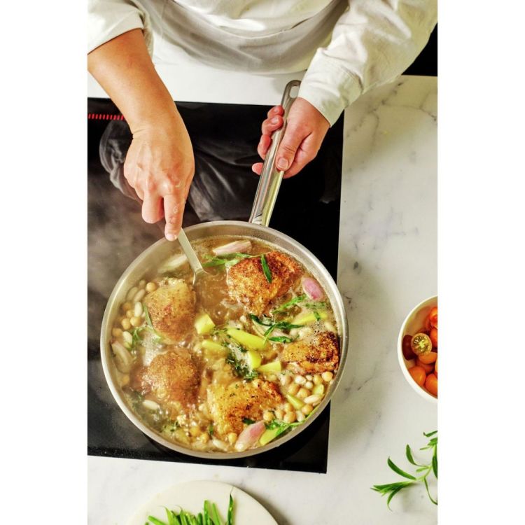 Met de Resto 3 reeks roestvrijstalen bakpannen ben je verzekerd van een betrouwbare kookervaring, dag in dag uit. Of je nu spiegeleieren bakt in boter, een perfect gegrilde steak bereidt of groenteburgers maakt voor je vegetarische tafelgenoten, de bakpannen uit de Resto 3 serie zorgen ervoor dat je ingrediënten hun maximale smaak behouden en de perfecte korst krijgen. De Resto 3 pannen presteren uitstekend op alle soorten vuren, inclusief inductie, en zijn zelfs geschikt voor gebruik in de oven. Dankzij de gelijkmatige warmteverdeling en warmtebehoud ben je verzekerd van een perfect resultaat, elke keer weer.