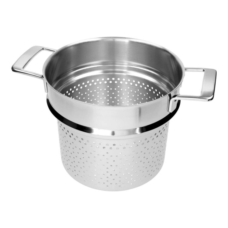 Kan je je geen leven zonder deegwaren inbeelden en deed je al volop inspiratie op in Toscane, Piemonte en Umbrië? Geef je graag je eigen twist aan Italiaanse streekgerechten? Dan is deze handige pasta-inzet van topkwaliteit uit de Silver 7 reeks absoluut onmisbaar in jouw keuken. Zeker als je ook de tagliatellelinten, spaghettislierten en orecchiette met de hand maakt. Zodra je pasta al dente is, til je eenvoudig de pasta-inzet uit de pot. Gewoon even laten uitlekken, klaar. Geen gevaar voor kokend water over je vingers. Geen deegwaren die ontsnappen. Deze tool is ook ideaal om tortellini en gnocchi perfect te garen, en voor het blancheren van groenten. Bovendien kan je het kookvocht hergebruiken voor een extra portie. Dat bespaart tijd, water en energie. Onze robuuste Silver 7 pasta-inzet, tevens vergiet, past in elke Demeyere soeppot van 24 cm doorsnede en is gemaakt van roestvrij staal. De speciale Silvinox® technologie voorkomt verkleuring, behoudt de glans en zorgt ervoor dat je je pasta-inzet telkens moeiteloos schoon krijgt. Deze pasta-inzet kan ook probleemloos de vaatwasser in. Goed voor jarenlang pastaplezier zonder gedoe. La vita e bella!