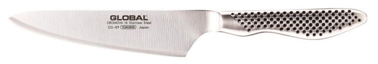 De Global GS-89 is het compacte broertje van de beroemde G-2: een wendbaar en licht koksmes van 13 cm, perfect voor fijn snijwerk, groenten, kruiden en kleinere ingrediënten.