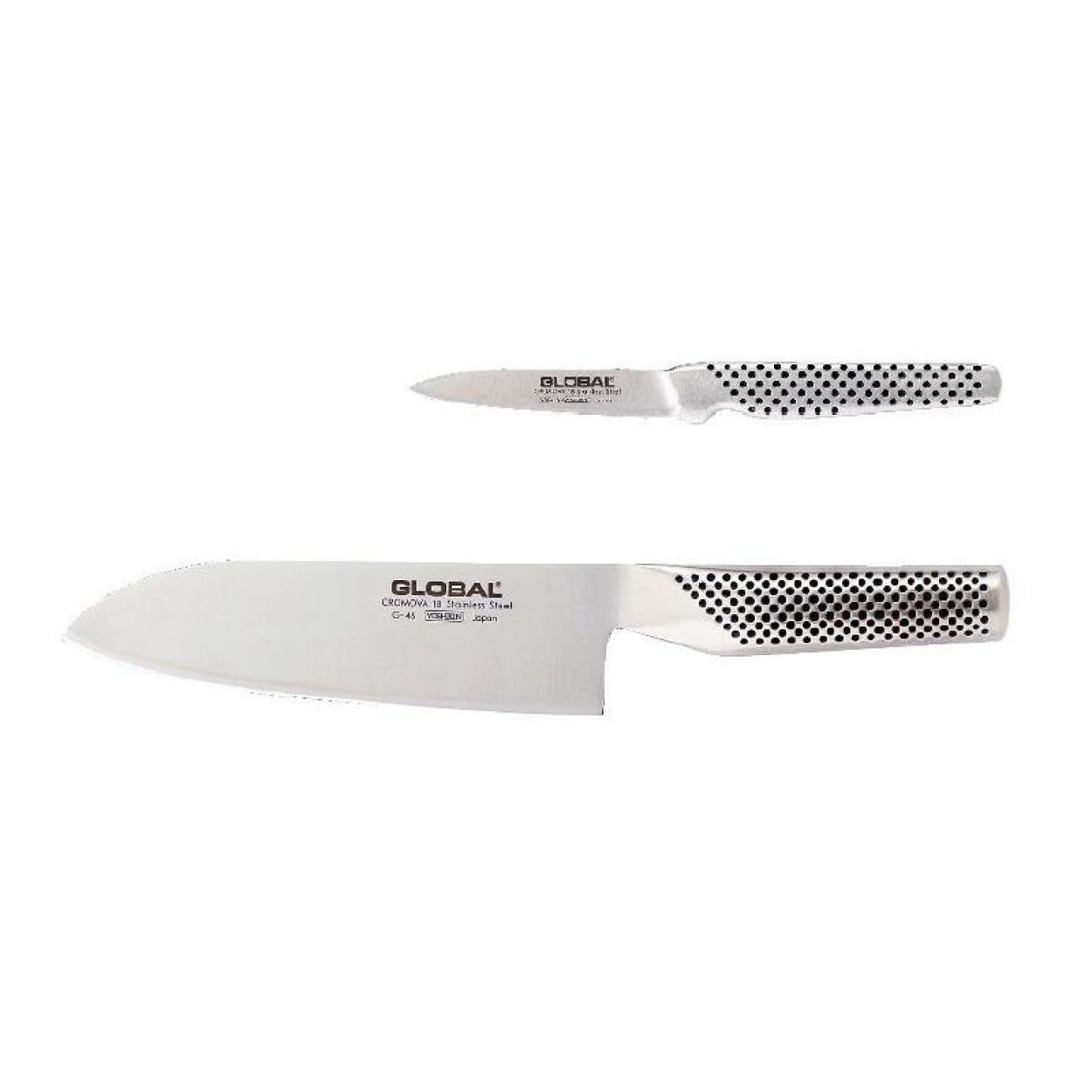 De set bevat een santokumes (18 cm) en een schilmesje (8 cm).