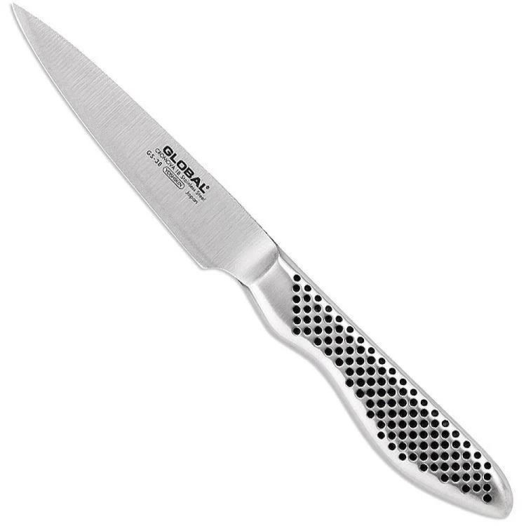 De Global GS-38 Schilmes is een klein, veelzijdig mes met een lemmet van 9 cm en een kenmerkend hol handvat. Dit mes maakt deel uit van de Little Essentials-reeks, ontworpen voor precisiewerk en kleinere taken in de keuken. Ideaal voor het schillen en ontkernen van fruit en groenten, maar ook voor andere klusjes die nauwkeurigheid vereisen.