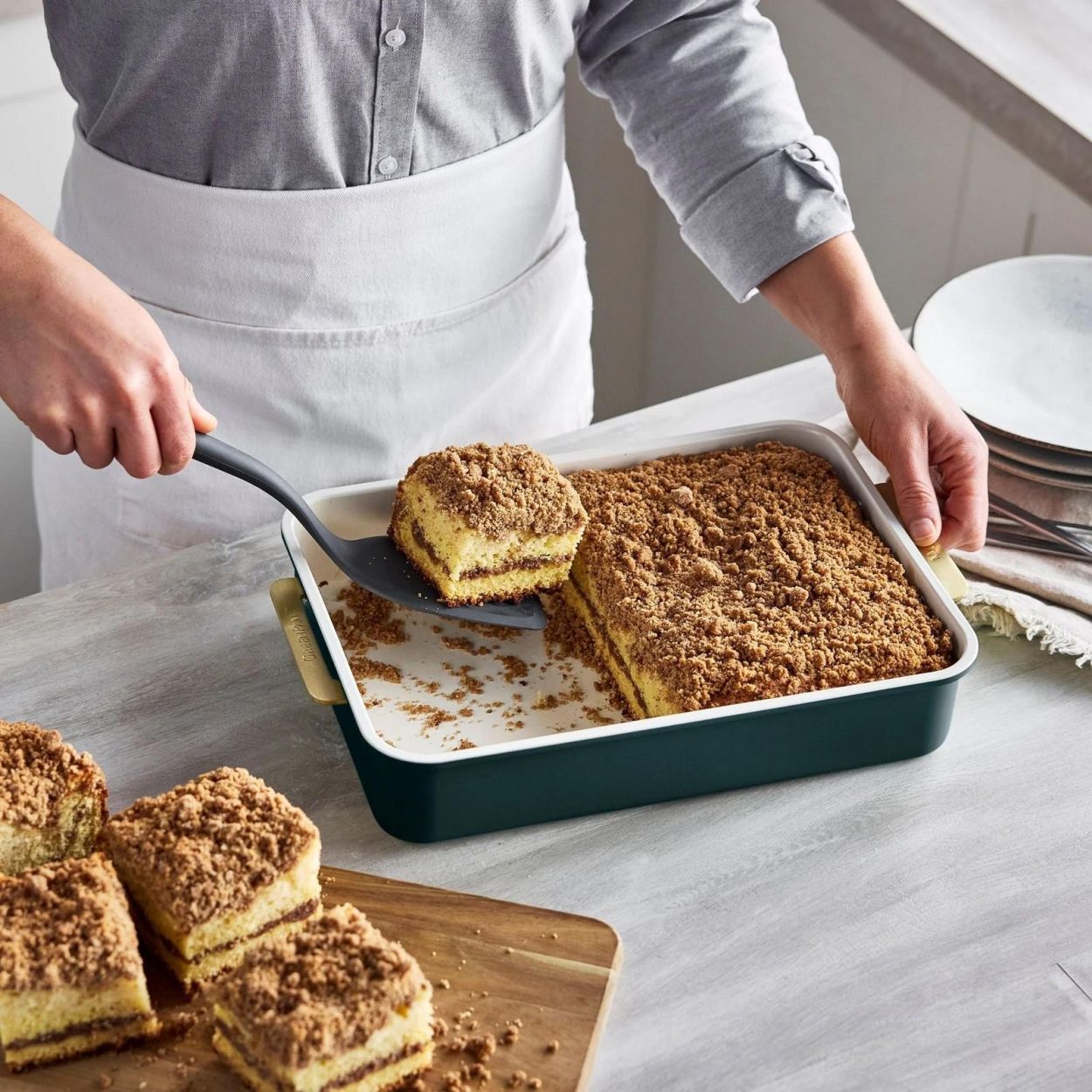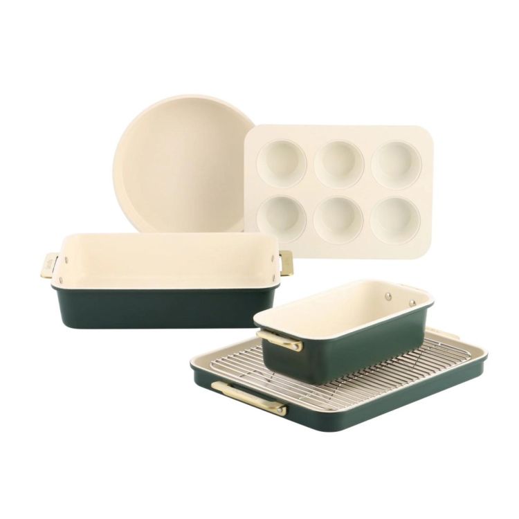 De bakvormen zijn voorzien van een geavanceerde PFAS-vrije keramische antiaanbaklaag. Hierdoor lossen baksels gemakkelijk, krijg je een mooi egaal bakresultaat en wordt schoonmaken een stuk eenvoudiger. De goudkleurige, slijtvaste handgrepen geven de set een luxueuze uitstraling en zorgen voor extra gebruiksgemak.