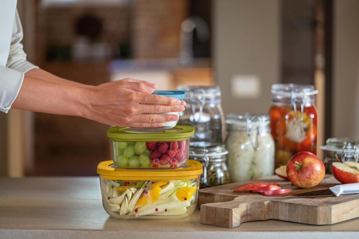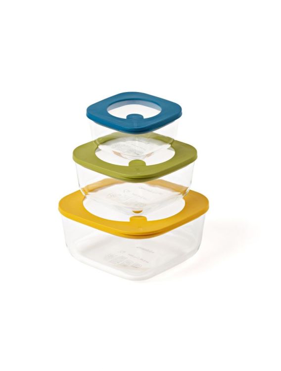 Ze kunnen in de koelkast, vriezer, magnetron (met ventiel) én in de oven (zonder deksel). De vierkante vorm maakt ze stapelbaar én nestbaar, ideaal voor slim ruimtegebruik in elke keuken.