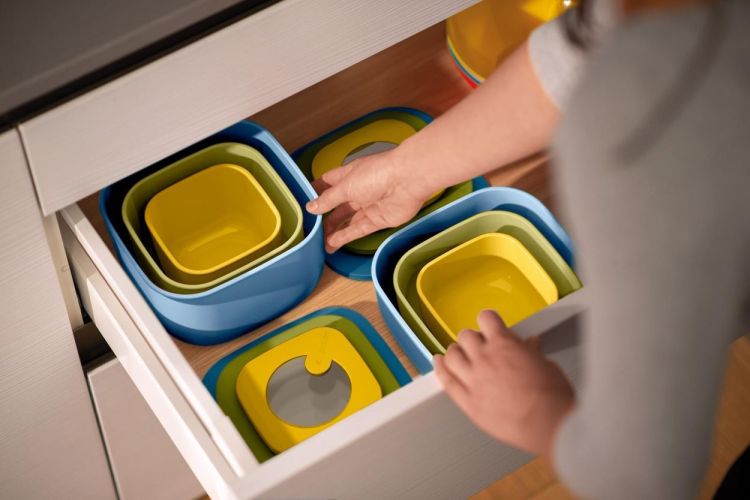 De vierkante vorm maakt ze stapelbaar én nestbaar — ideaal om ruimte te besparen in je kast of lade.