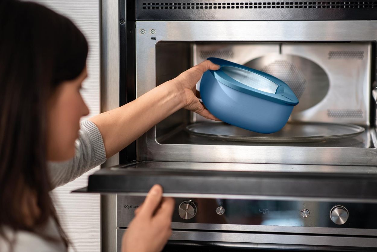 Slim bewaren, overal. Deze luchtdichte bewaardozen van Guzzini zijn perfect voor het bewaren van voedsel in de koelkast of vriezer, het opwarmen in de magnetron en zelfs voor onderweg als lunchbox.