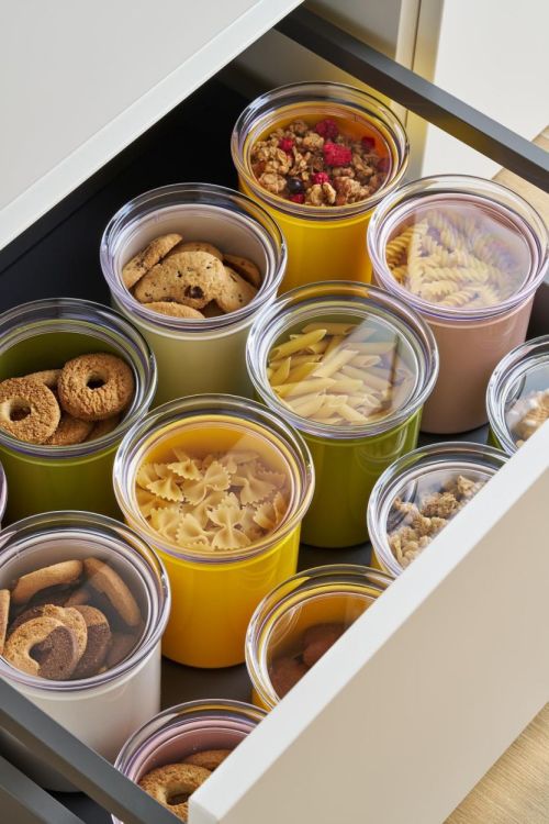 Ideaal om droge producten vers te bewaren dankzij de speciale luchtdichte sluiting. De elegante transparante deksel zorgt ervoor dat je altijd precies ziet wat erin zit. De potten zijn stapelbaar en nemen weinig ruimte in beslag.