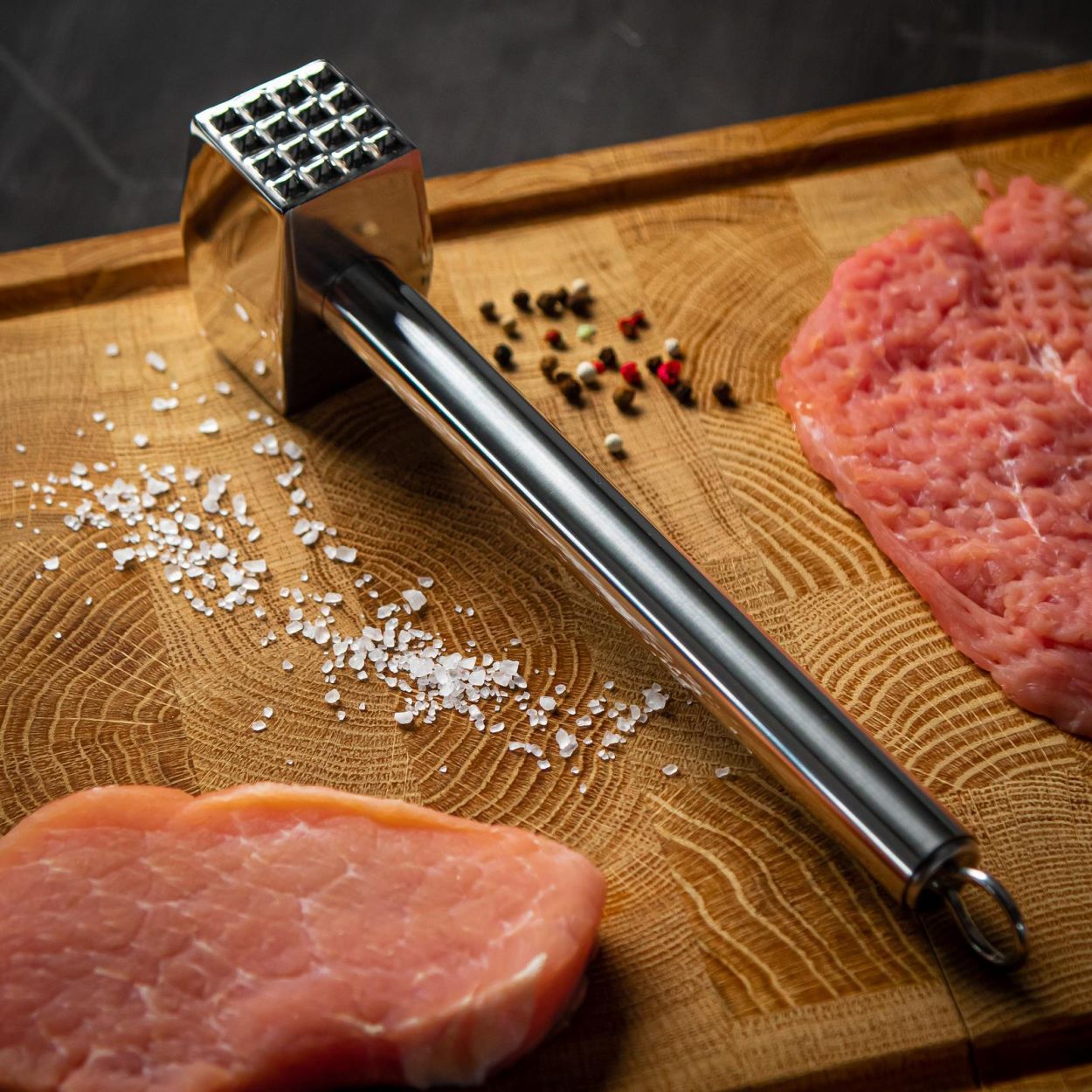 Schnitzels, steaks of medaillons in topvorm? De Chef vleeshamer van Küchenprofi maakt het makkelijk. Hij plet en verzacht het vlees zonder dat je veel kracht hoeft te zetten – perfect voor gelijkmatig garen en een mals resultaat.