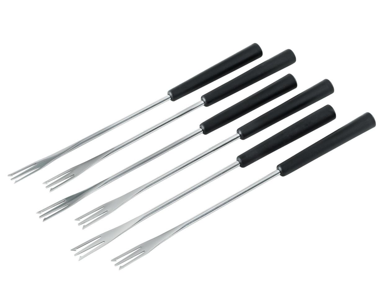 Klassieke fonduevorken voor zowel kaas- als vleesfondue. De vorken zijn voorzien van een stevige kunststofhandgreep en liggen comfortabel in de hand. Praktisch en duurzaam – ideaal voor gezellige fondueavonden.