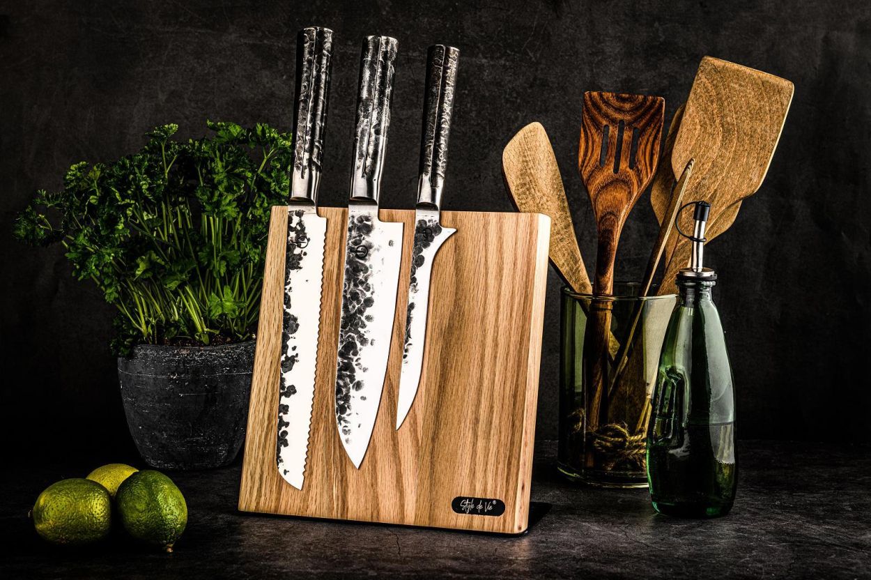 Deze messenhouder is gemaakt van massief eikenhout, met in elk exemplaar een unieke nerf en kleur. De krachtige magneten bieden ruimte aan 5 tot 7 messen en houden ze veilig binnen handbereik. Een strak en natuurlijk ontwerp dat perfect past in elke keuken.