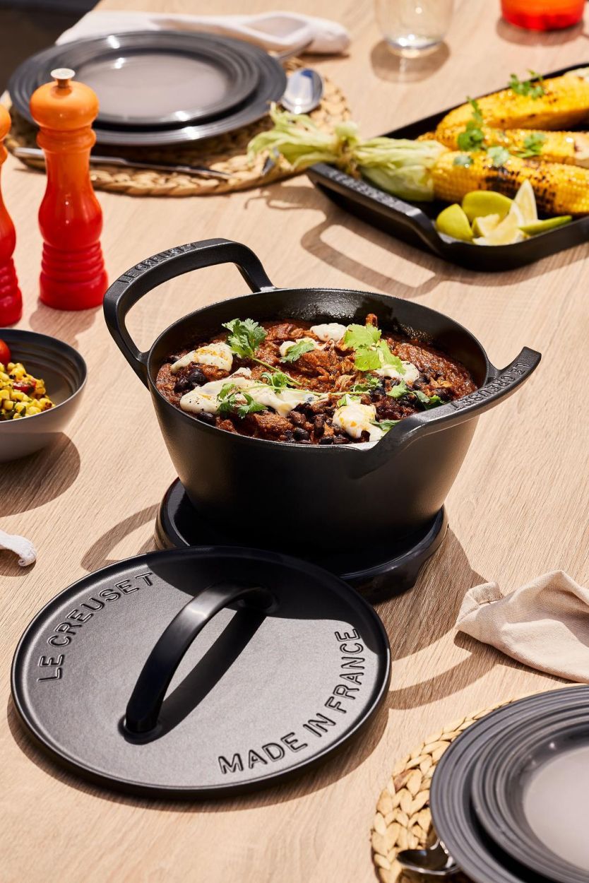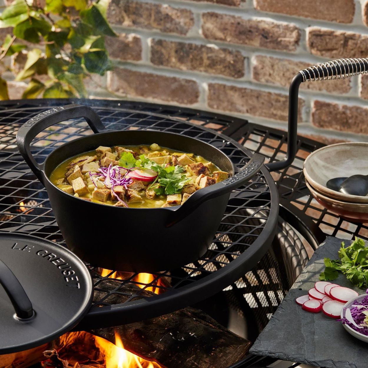Stap uit de keuken met deze BBQ Outdoor-stoofpan, ideaal voor het langzaam koken en smoren van mals vlees en stoofschotels buitenshuis bij temperaturen tot 300 °C. Het levert verbeterde prestaties, superieure warmteverdeling en -behoud, terwijl de lichte kromming van het deksel het vocht vasthoudt. Het robuuste matzwarte email is klaar voor gebruik – geen kruiden nodig. Dankzij het stapelbare ontwerp kun je de set eenvoudig opbergen bij de andere producten uit de BBQ Outdoor-collectie.