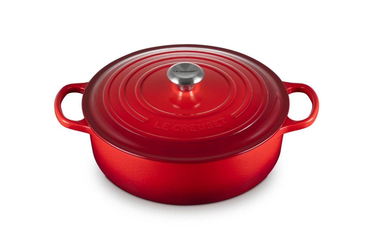 VariantenHerontdek Cerise, de klassieke kersenrode kleur van Le Creuset, in een uitgebreid assortiment gietijzer, aardewerk en keukenaccessoires.