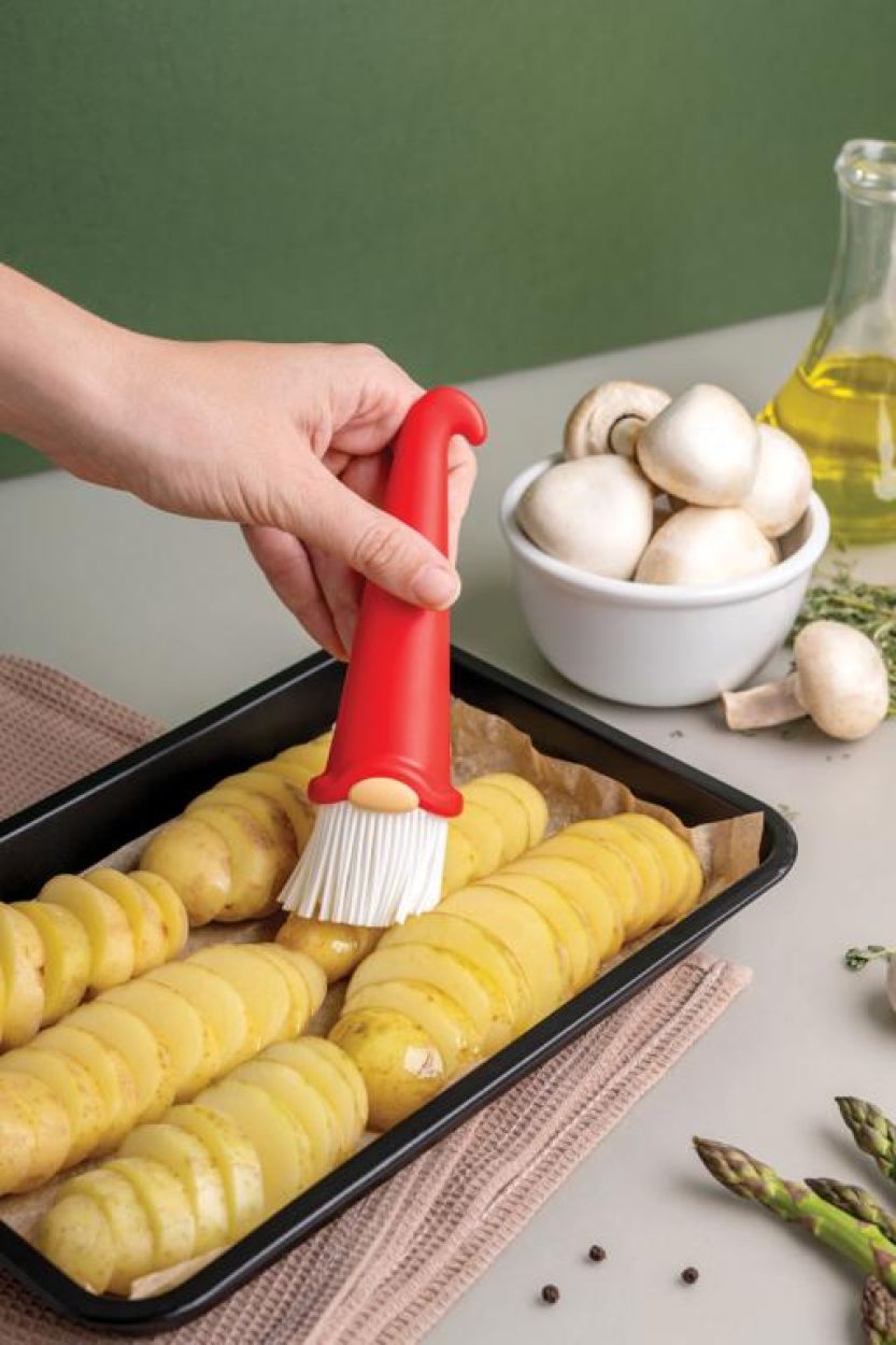 Bakken met een glimlach! Gnomeo van Ototo is de kabouter die je keuken verovert. Zijn zachte “baard” fungeert als kwast om boter, saus of glazuur moeiteloos aan te brengen. Dankzij het slimme ontwerp ligt hij fijn in de hand en blijft hij stabiel staan als je hem even neerzet. Gemaakt van hittebestendig, 100% voedselveilig en BPA-vrij materiaal – perfect voor dagelijks gebruik. Klein van stuk, groot van charme!