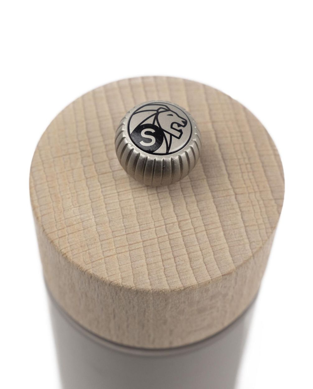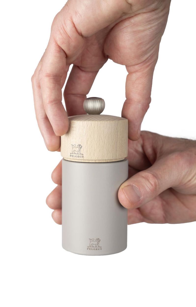 Compacte zoutmolen in beukenhout, uitgerust met het exclusieve Peugeot Zirlium-mechanisme, speciaal ontwikkeld voor droog grof zout (korrel tot 6 mm). De maalgraad is instelbaar met de knop aan de bovenzijde: van zeer fijn tot grof. Vervaardigd in Frankrijk, met hout uit PEFC-gecertificeerde bossen.