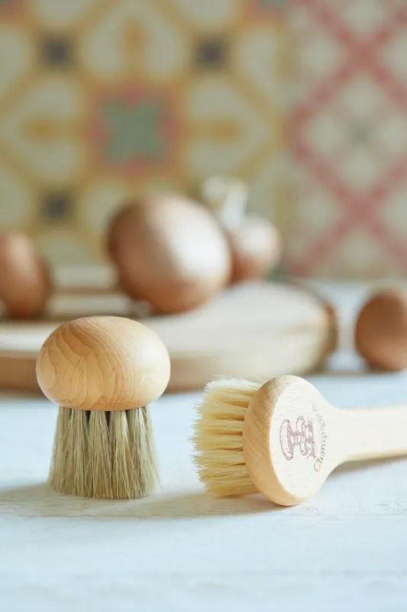 Champigonborstel vervaardigd uit beukenhout en paardenhaar. Lengte: 13 cm.