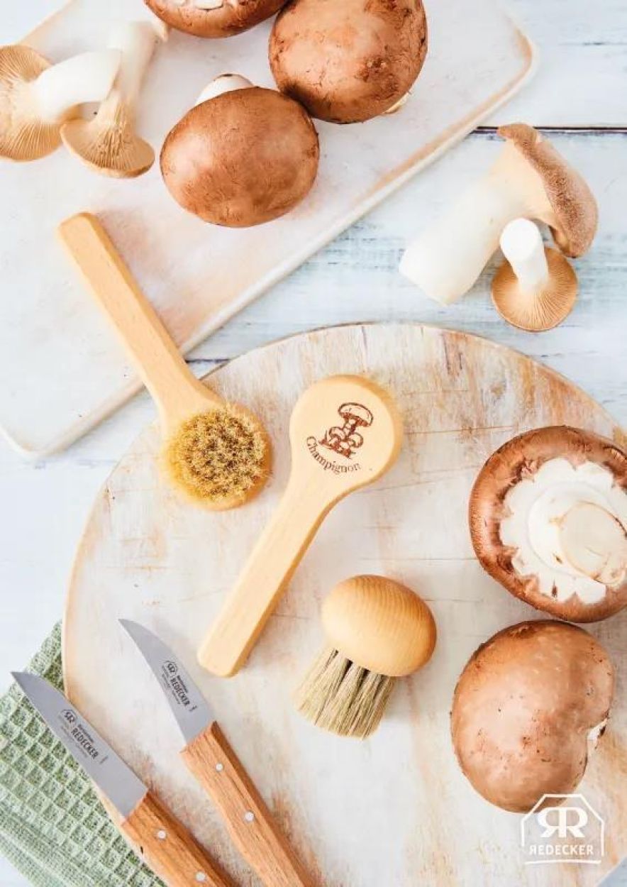 Champigonborstel vervaardigd uit beukenhout en paardenhaar. Diameter: 4,5 cm.