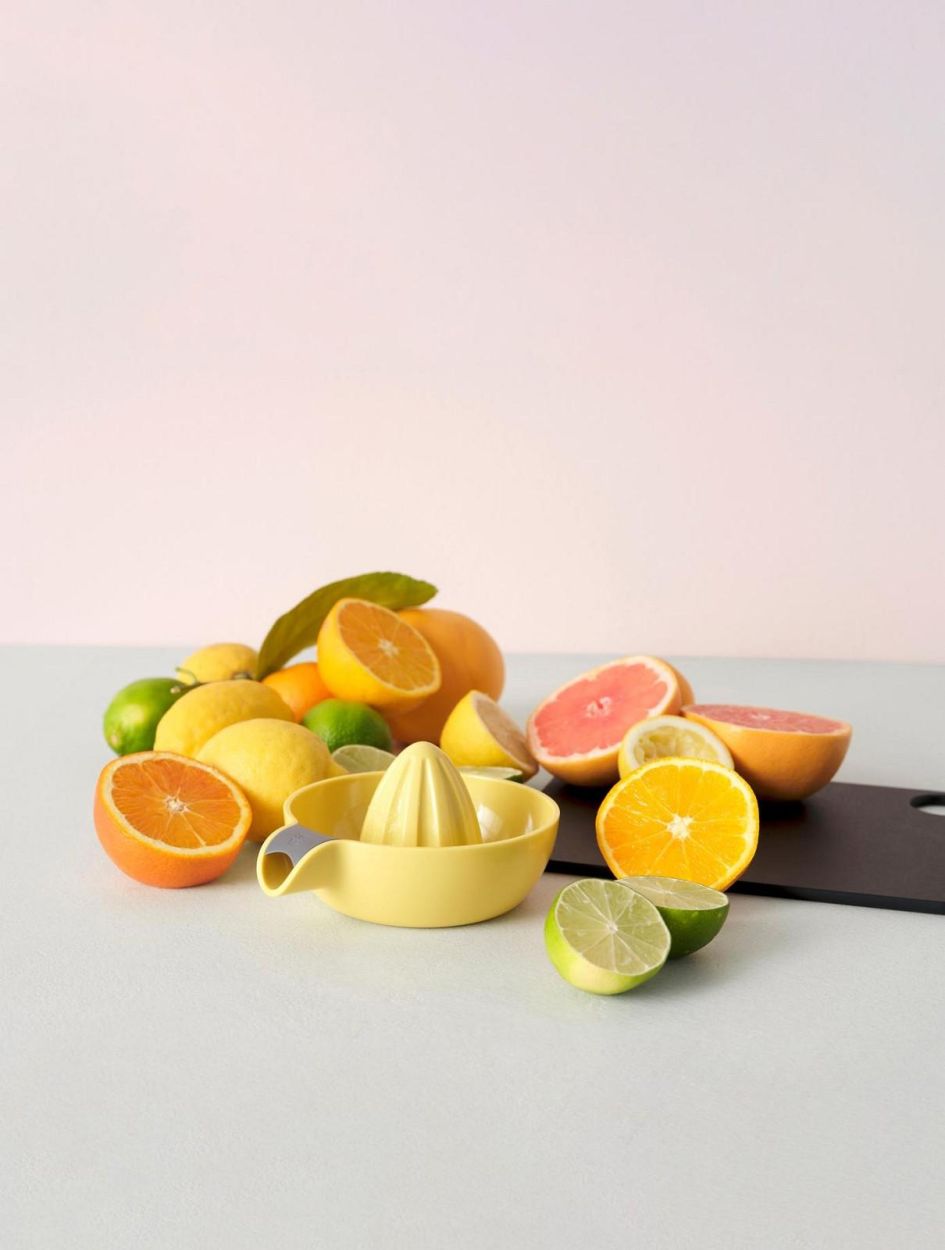 De JUICY citruspers is een klein maar onmisbaar hulpje in de keuken. Ontworpen door Rasmus Halfdan Breck combineert deze compacte pers een sculpturaal design met slimme functionaliteit. Citroenen, limoenen en sinaasappels pers je moeiteloos tot de laatste druppel uit.