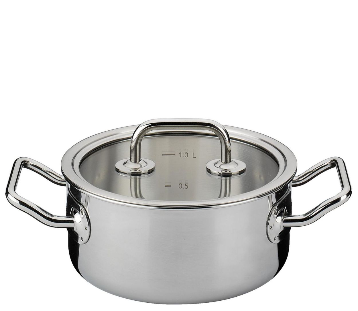 Materiaal: meerlaags materiaal met een buitenlaag van inductie-compatibel 18/0 roestvrij staal, een binnenlaag van 18/10 roestvrij staal en een aluminium kern. Inclusief glazen deksel. Geschikt voor alle soorten kookplaten, inclusief inductie. Oven- en vaatwasserbestendig.