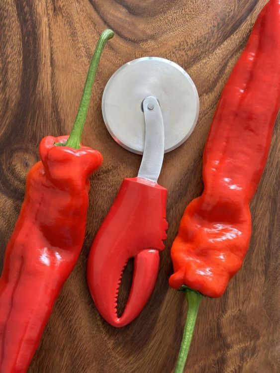 Unieke pizzasnijder met een handvat in kreeftenpoot design. Stijlvol en functioneel, ideaal voor het perfect snijden van pizza's met een creatieve twist!