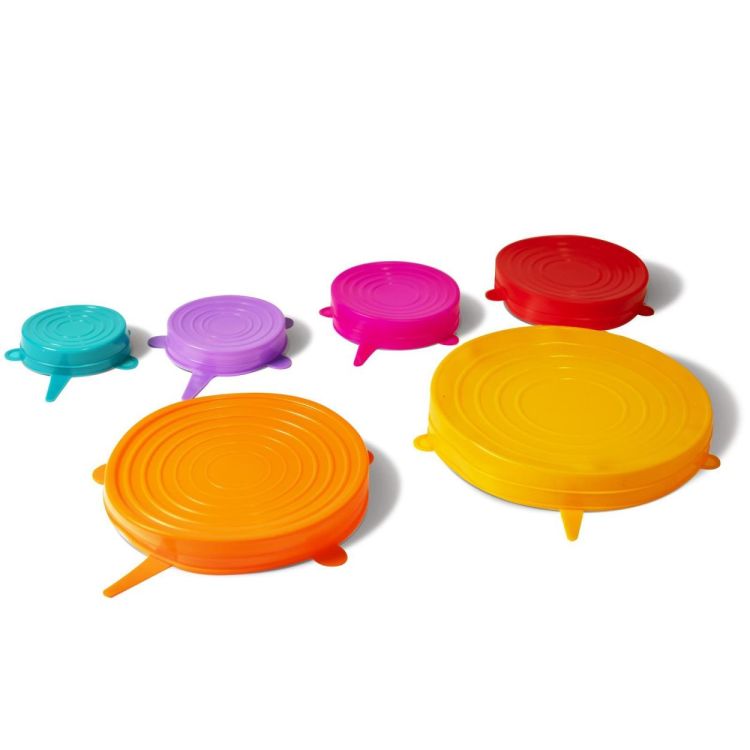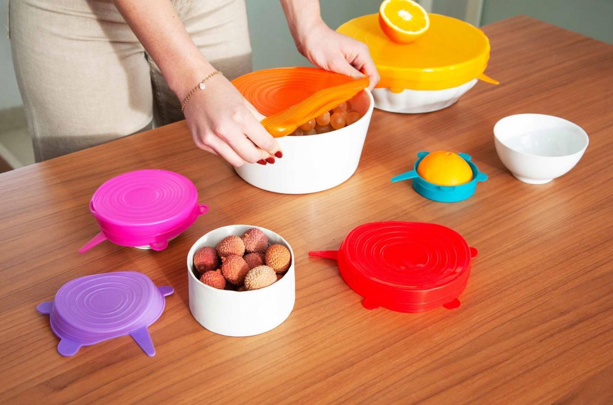 Deze set van zes elastische siliconen deksels is een handig en duurzaam alternatief voor vershoudfolie. Ze passen zich flexibel aan verschillende vormen en maten aan en sluiten bakjes, kommen en glazen stevig af dankzij hun waterdichte seal. De deksels zijn herbruikbaar, waterdicht, elastisch, en mogen in zowel de microgolfoven als de vaatwasser. Ideaal voor dagelijks gebruik én om minder afval te creëren.