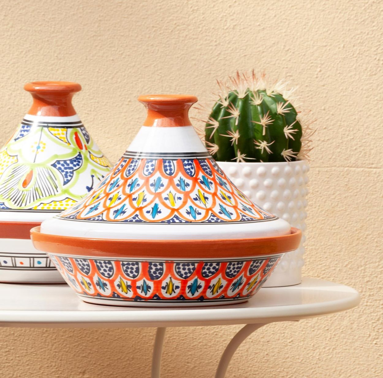Deze tajine in geglazuurde terracotta is ideaal voor het bereiden van traditionele stoofgerechten: van vlees en vis tot groenten en couscous. Het materiaal houdt de warmte mooi vast en zorgt voor een gelijkmatige, zachte garing.