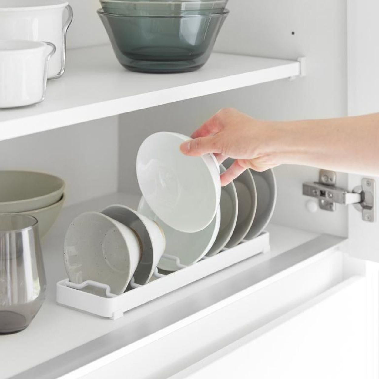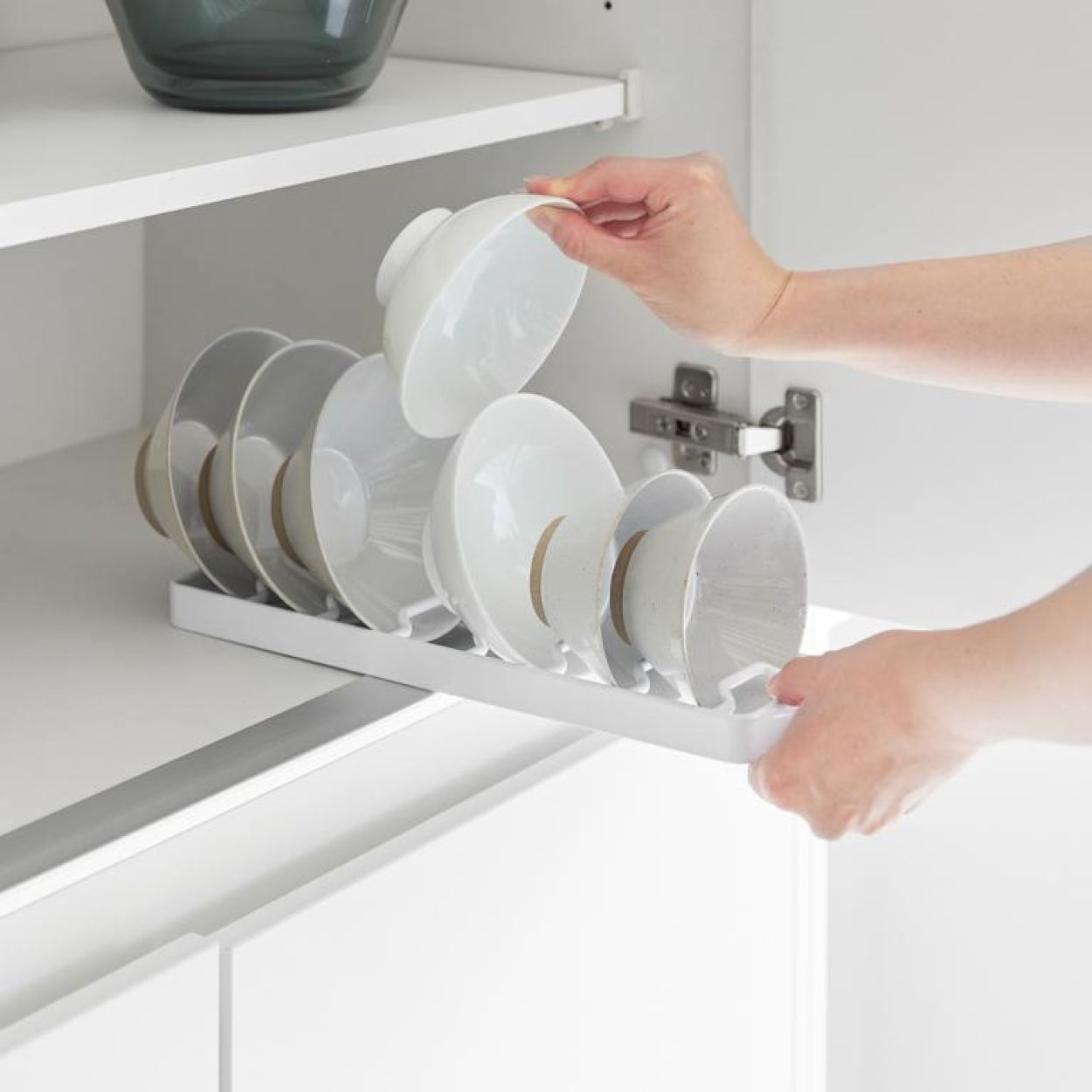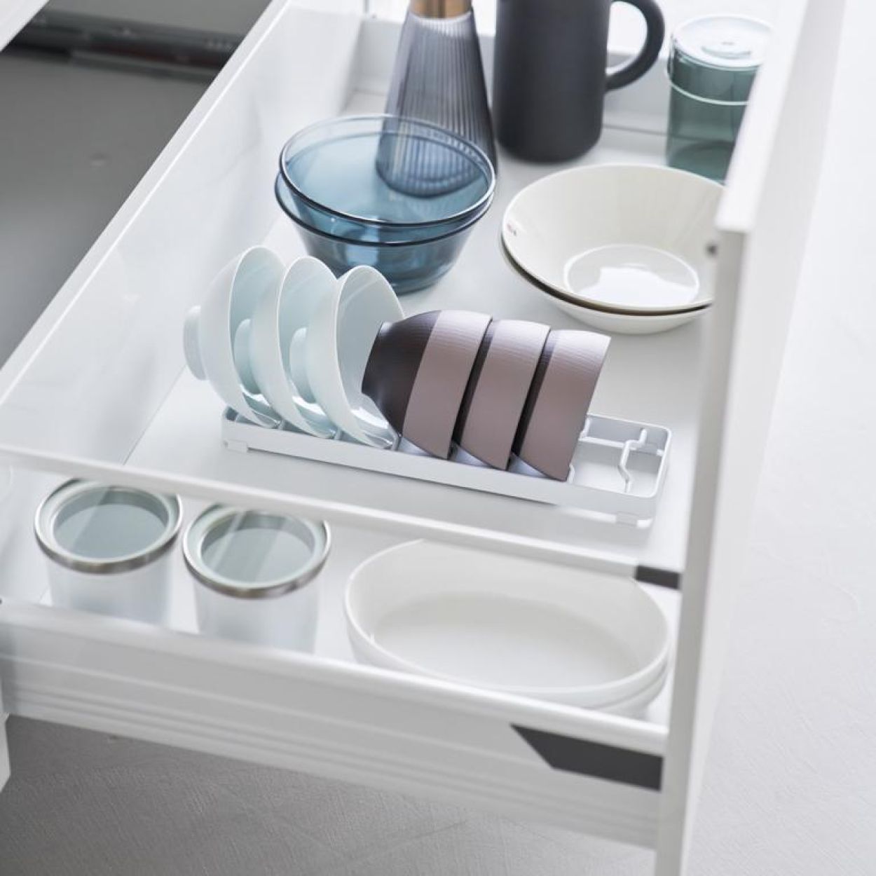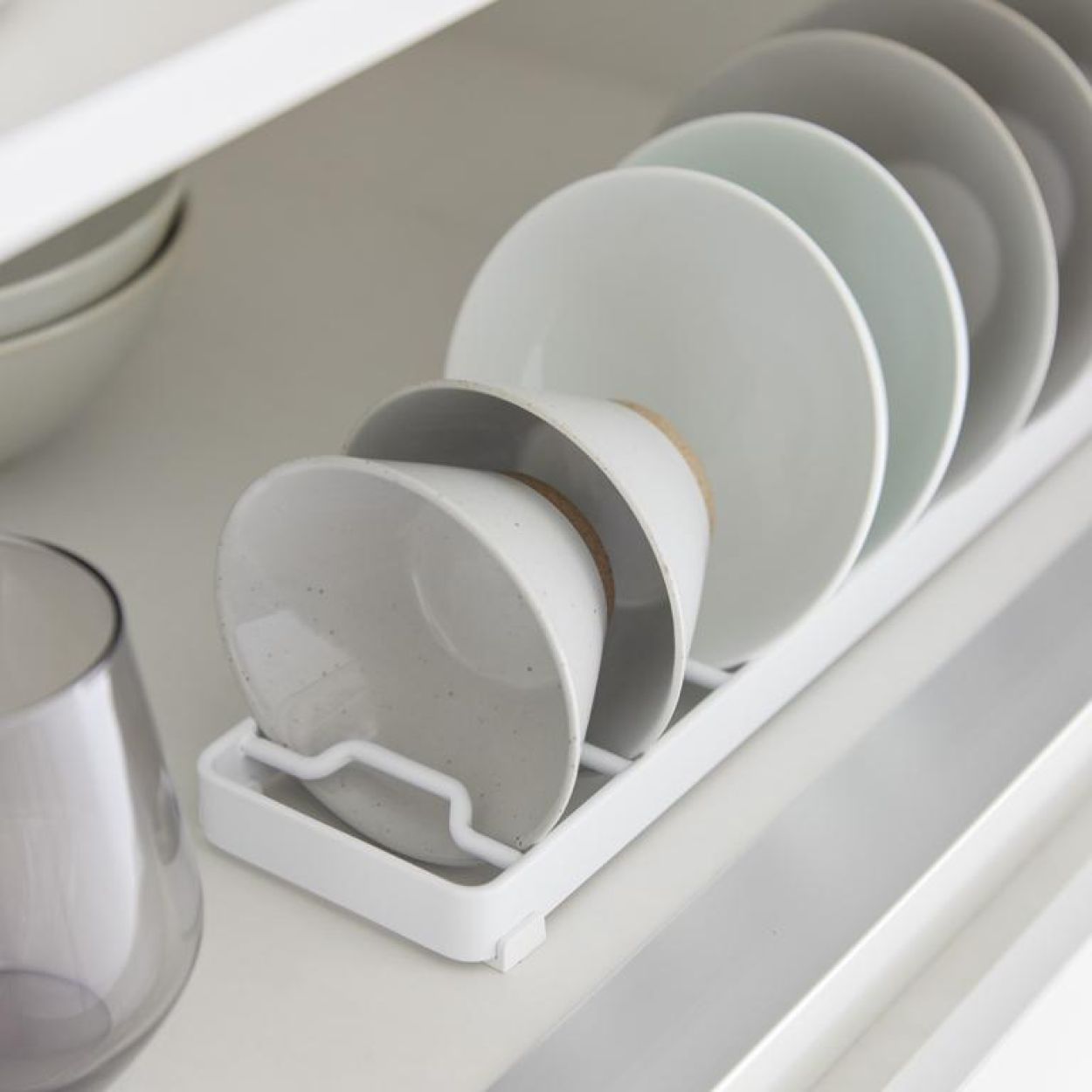 Kleine moeite, groot verschil in je keukenkastje. De Tower S bordenhouder van Yamazaki houdt borden, schalen en kopjes netjes op hun plek — overzichtelijk, stabiel en altijd binnen handbereik. Er is ruimte voor maximaal zeven schalen, en dankzij de siliconen voetjes blijft het rek stevig staan zonder te schuiven. Minimalistisch design, maximale orde.