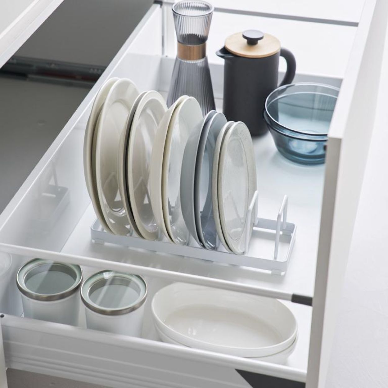 Grote oplossing voor een opgeruimde keuken. De Tower XL bordenhouder van Yamazaki houdt je borden veilig en overzichtelijk, met een slimme horizontale opberging die krassen en beschadigingen voorkomt. Zo benut je elke centimeter in je keukenkast optimaal. De siliconen voetjes zorgen voor extra stabiliteit en voorkomen verschuiven. Strak design, doordachte functionaliteit — typisch Yamazaki.
