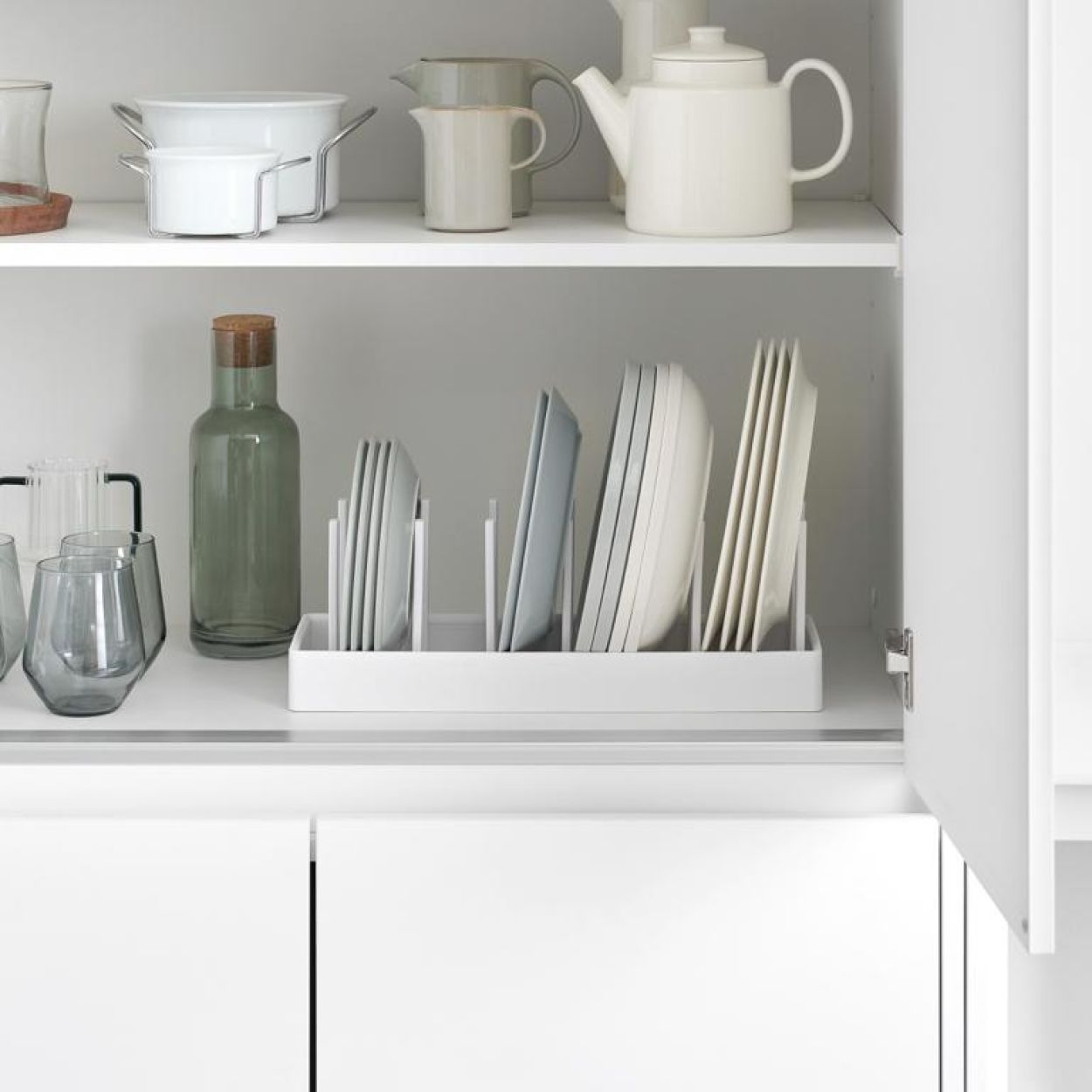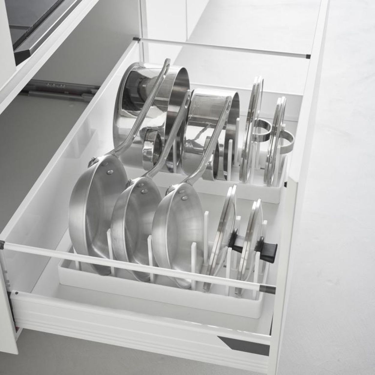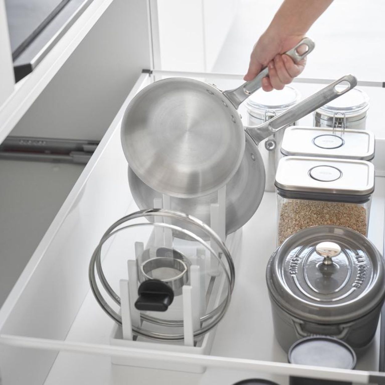 Bye bye, rommelige keukenkastjes! Met de Tower deksel- en pannenhouder van Yamazaki houd je alles netjes op z’n plek. Zet je potten, pannen en deksels overzichtelijk naast elkaar, precies zoals jij het wilt. Dankzij de verstelbare verdelers pas je het rekje makkelijk aan elk formaat aan. De antislipmat voorkomt verschuiven en zorgt voor extra stabiliteit. Simpel, strak en superhandig – precies wat je keuken nodig heeft.