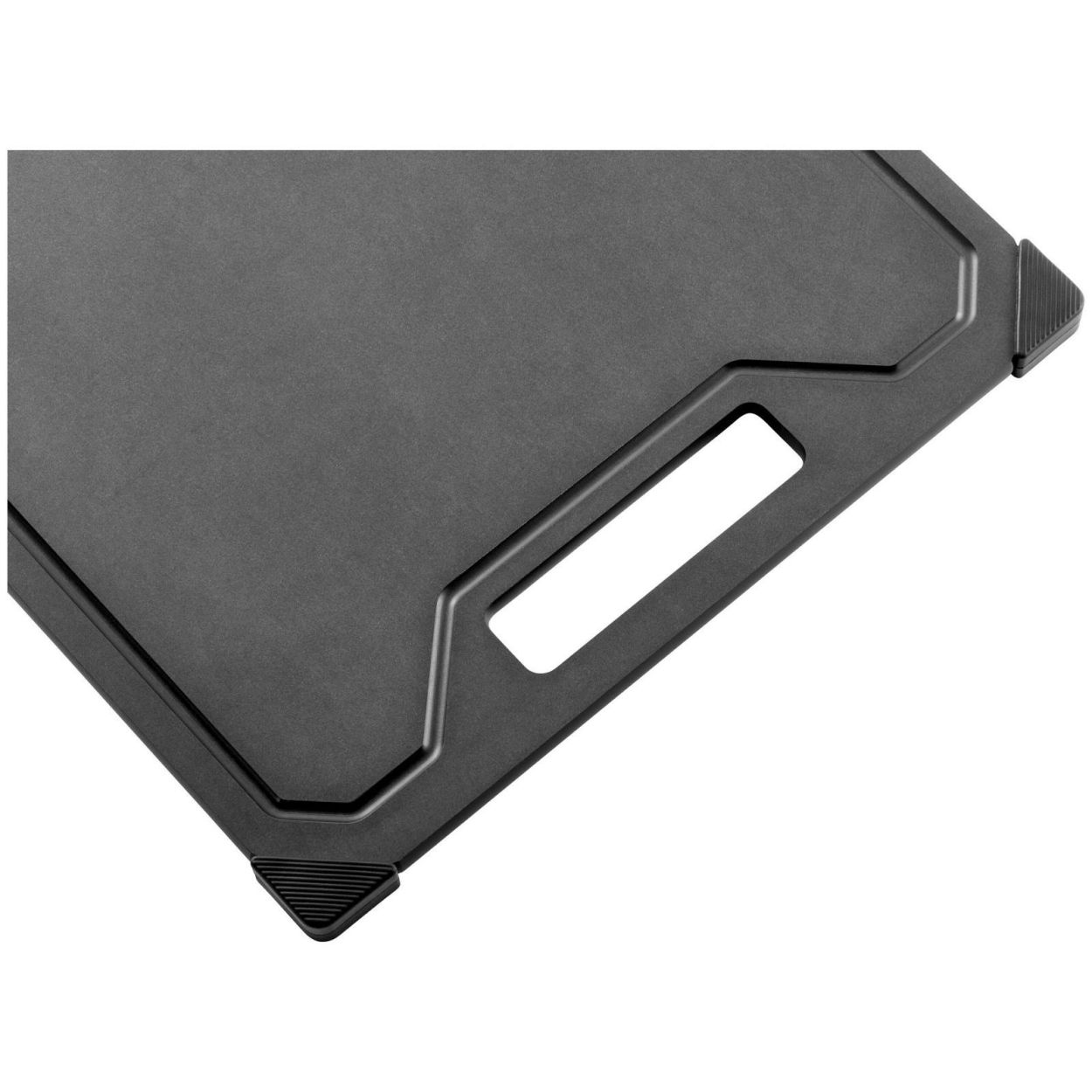 De ingewerkte sapgeul voorkomt dat sappen over je werkblad lopen – ideaal voor het snijden van vlees, groenten of sappig fruit. Het materiaal is zacht voor je messen, maar tegelijk robuust, hygiënisch en hittebestendig tot 176°C. Na gebruik mag de plank gewoon in de vaatwasser en blijft hij stevig liggen dankzij de antislip siliconen voetjes.