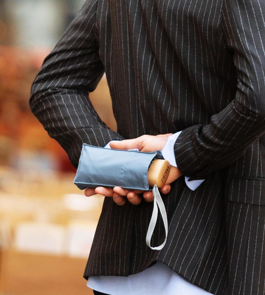De blauw-grijze tint van de mini-paraplu Victor past prachtig bij elke outfit. Combineer hem met karamel- en kaki-tinten voor een vlekkeloze look, of ga voor een frisse uitstraling met lila en fuchsia roze accenten.
