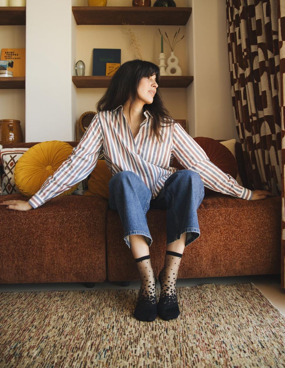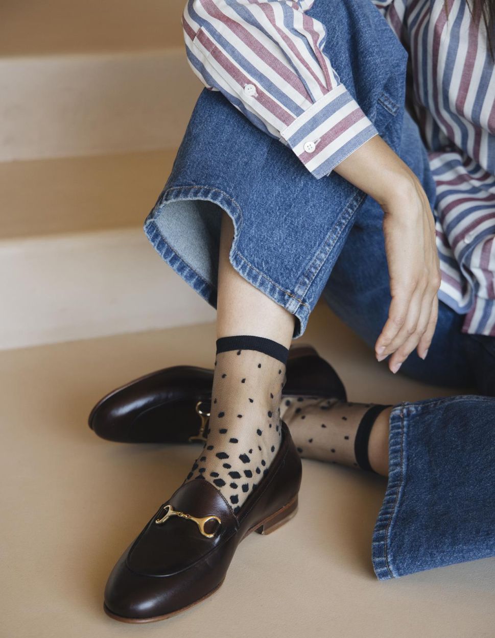 Gemaakt van hoogwaardige polyamidvezels, biedt het een lichte, zachte en duurzame kwaliteit. De hiel en teen zijn discreet versterkt voor extra comfort en een perfecte pasvorm, zodat het paar niet alleen mooi oogt, maar ook lang meegaat.