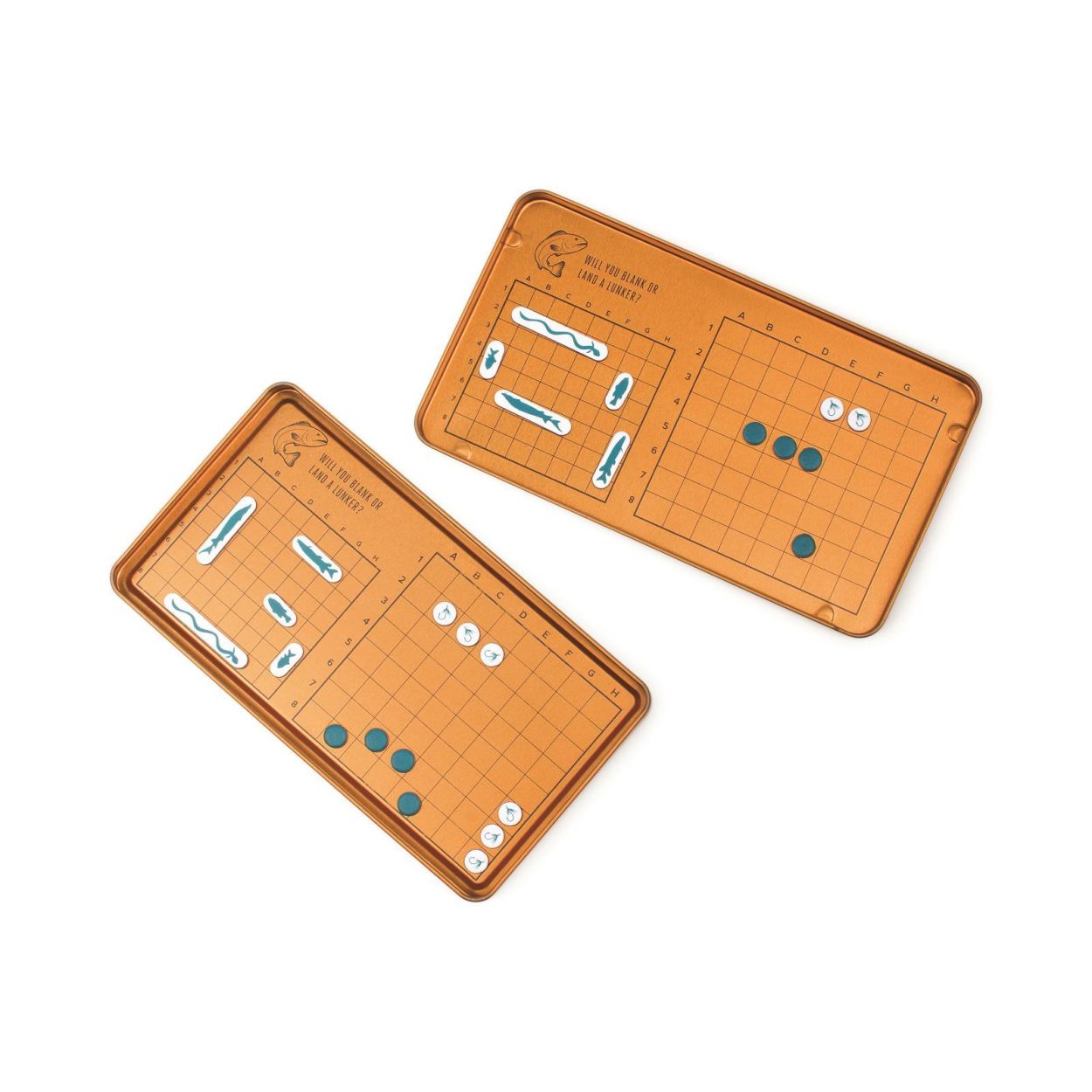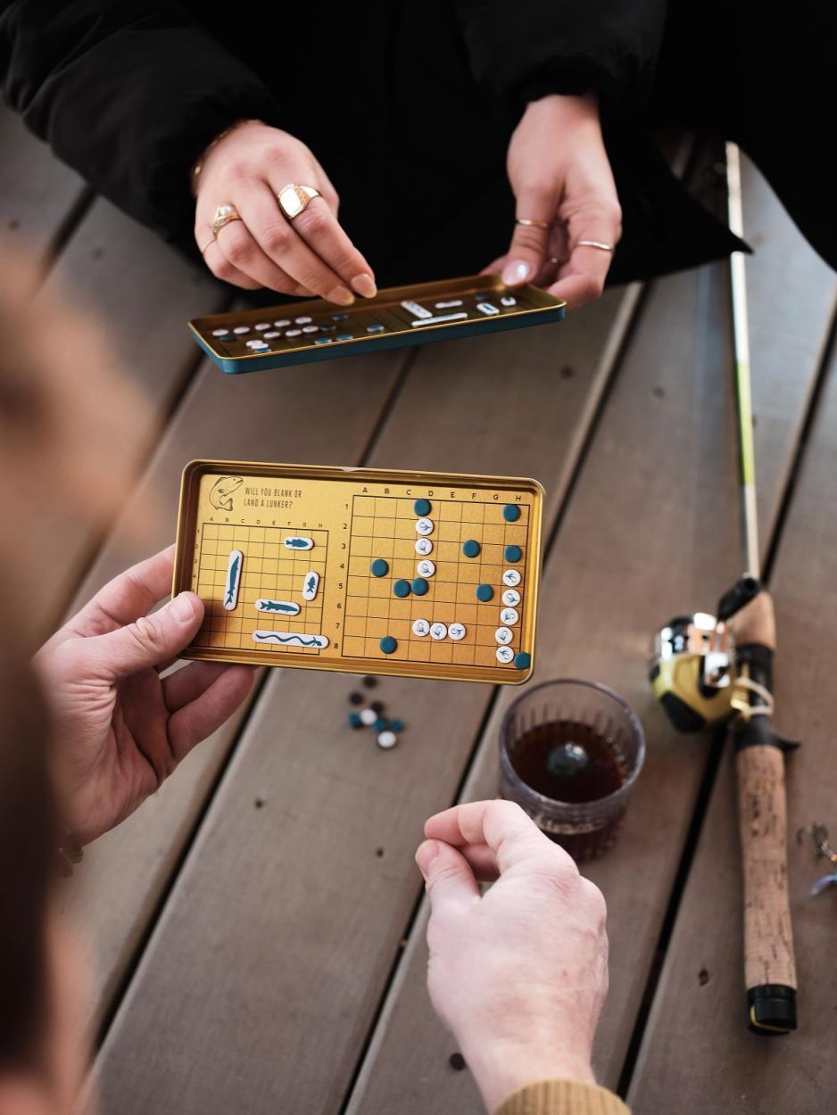 Een tactisch spel voor twee vissers in spe. Plaats stiekem je vissen op het bord en probeer te raden waar je tegenstander die van hem heeft verstopt. Haak zijn vangst voordat hij die van jou pakt! Spannend, snel en verrassend – wie haalt de grootste vis binnen?