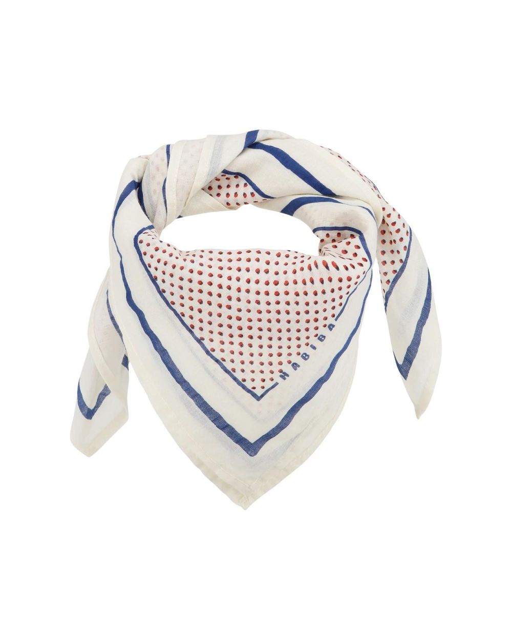 De Dotty Bandana bewijst dat eenvoud soms het mooiste is. De fijne print met kleine stipjes geeft deze bandana een speelse, tijdloze uitstraling die moeiteloos bij elke stijl past. De handgetekende rand en het kleine HABIBA-logo maken het ontwerp extra persoonlijk — een subtiel detail, met liefde gemaakt.