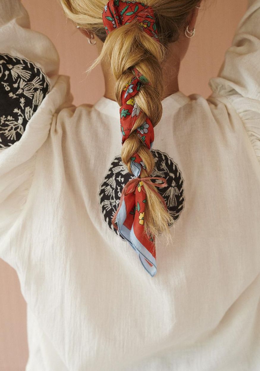 Gemaakt van 100% biologisch katoen voile, een lichte en zachte stof die elegant valt en comfortabel draagt. In je haar, rond je hals of geknoopt aan je tas: deze bandana voegt meteen kleur en karakter toe.
