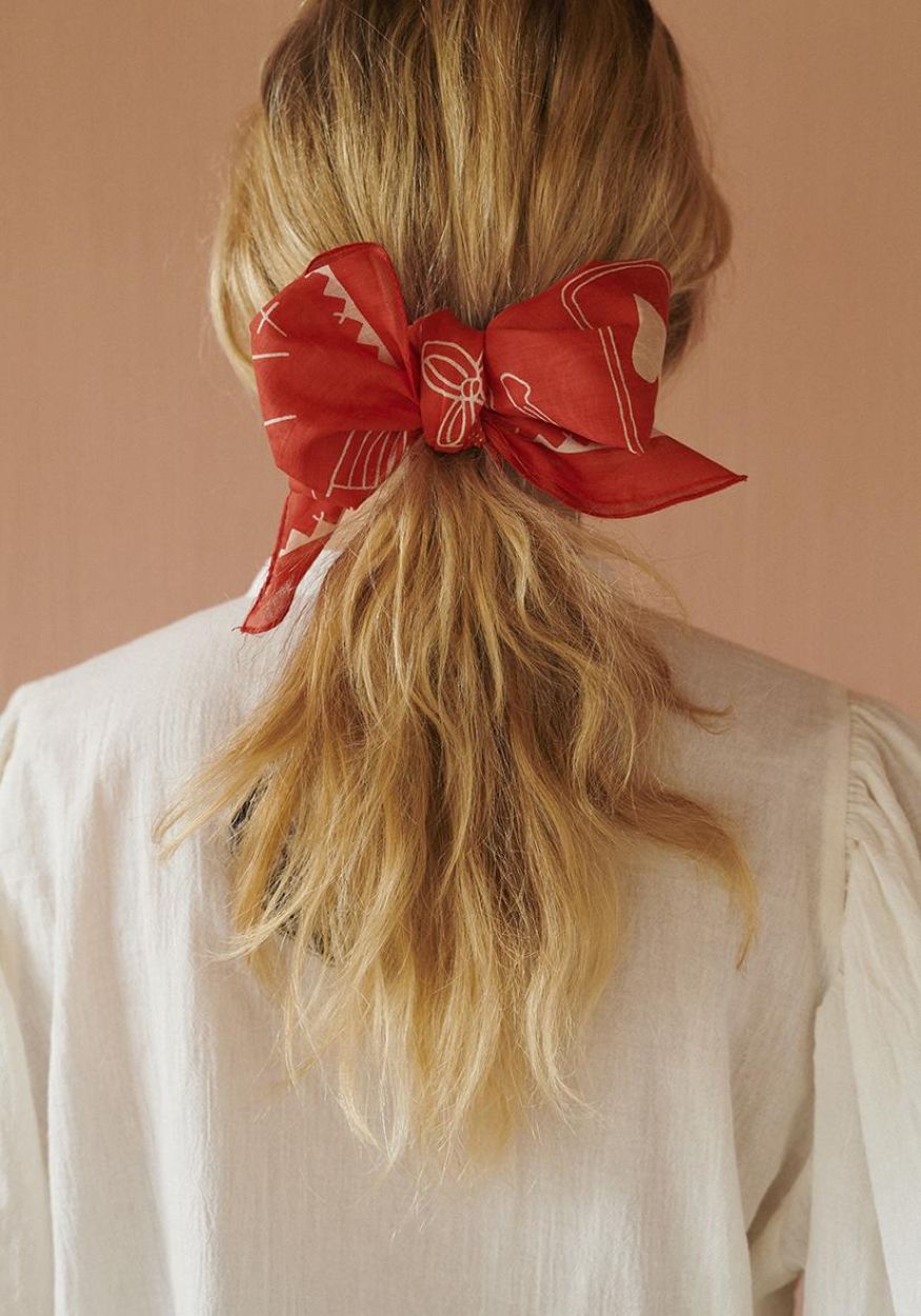Gemaakt van 100% biologisch katoen voile, licht, zacht en luchtig. Draag hem in je haar, rond je hals of aan je tas voor een creatieve en karaktervolle touch.