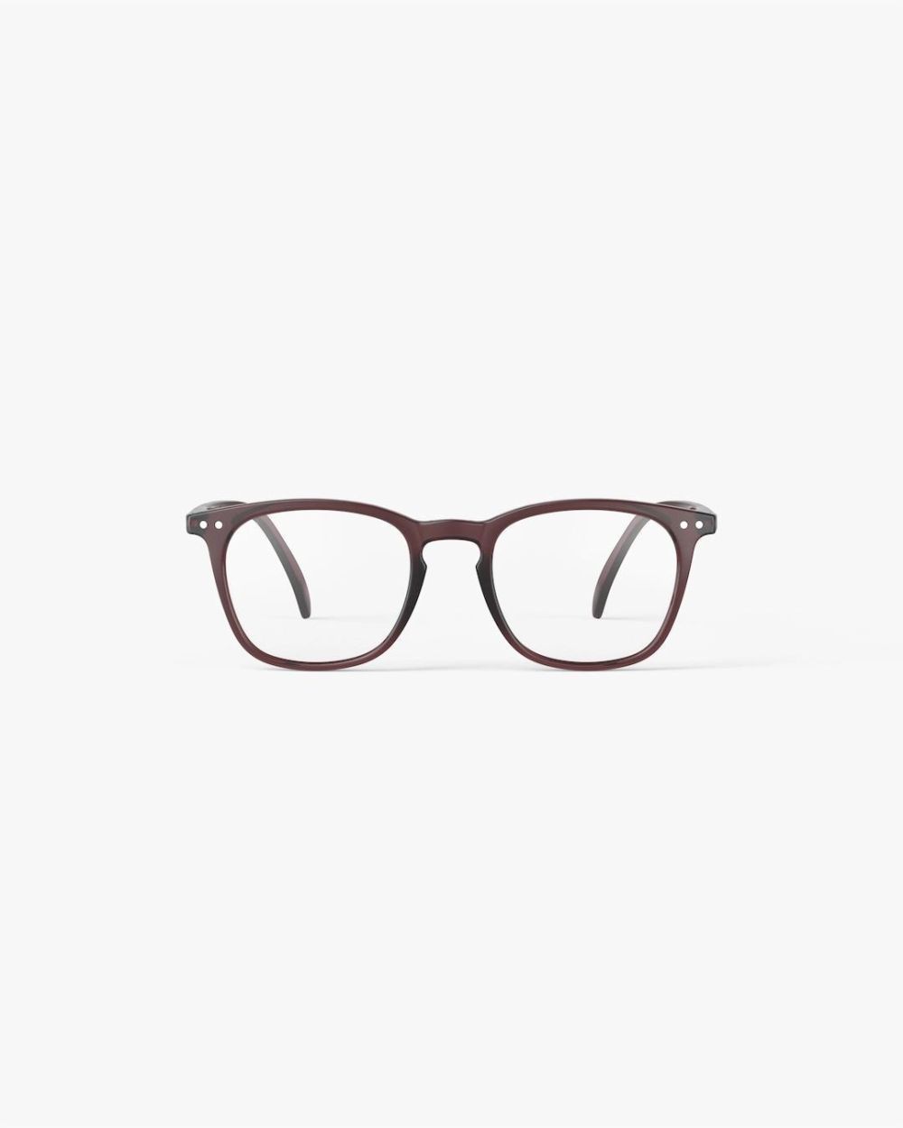 De #E leesbril van IZIPIZI valt op met zijn grote, trapeziumvormige montuur en gestructureerde uitstraling. Ideaal voor wie op zoek is naar comfort, karakter én scherp zicht vanaf de eerste letter.