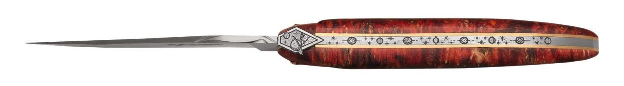 Laguiole en Aubrac Vouwmes 12cm Space bee, Fire Elder Burl, brass plates |