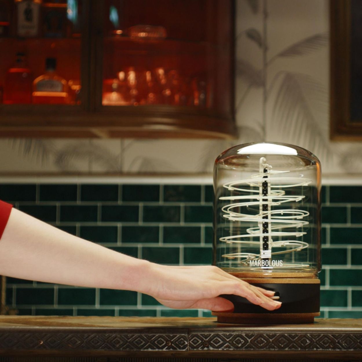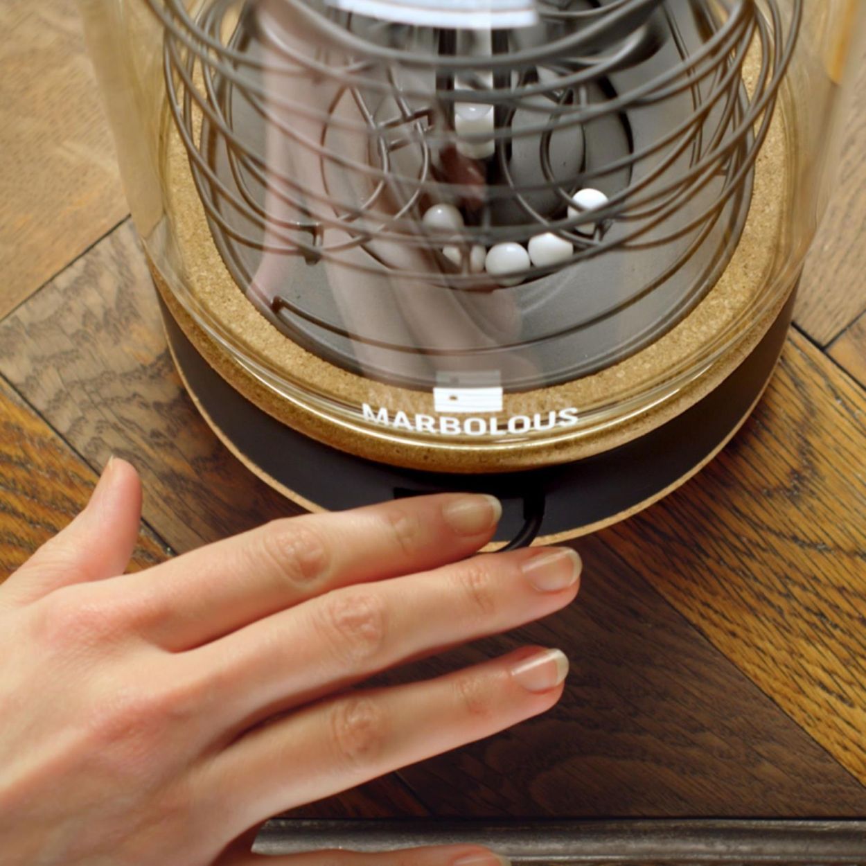 De MARBOLOUS Classic is het originele kinetische designobject – een perfecte blikvanger voor op uw bureau. Met zijn puur mechanisch hefsysteem, volledig zonder kabels of batterijen, brengt hij op speelse wijze vreugde in het alledaagse. Met een eenvoudige druk op de hefboom rollen de knikkers over het 3,5 meter lange roestvrijstalen spoor, telkens opnieuw een moment van verwondering voor uzelf, uw vrienden of uw klanten.