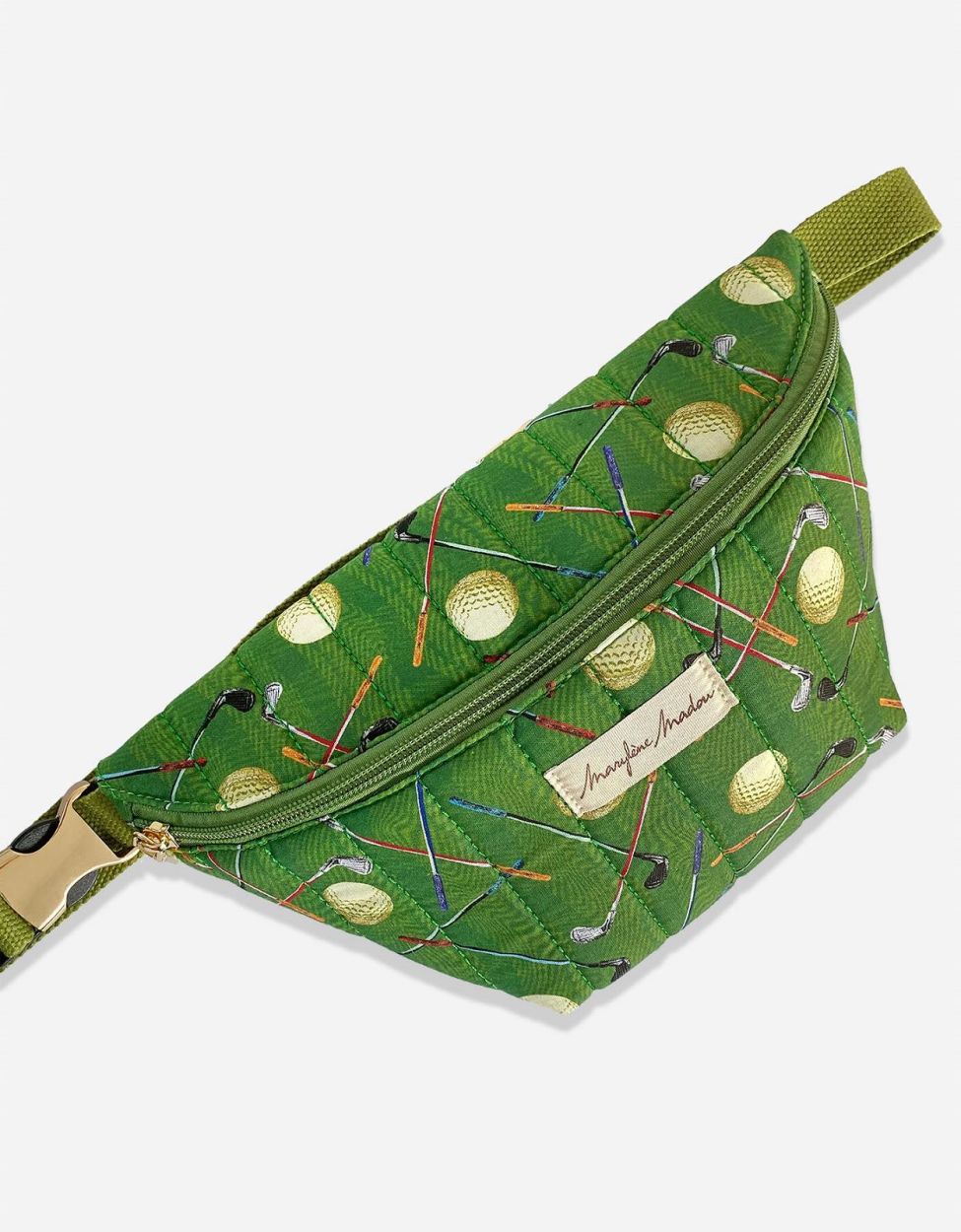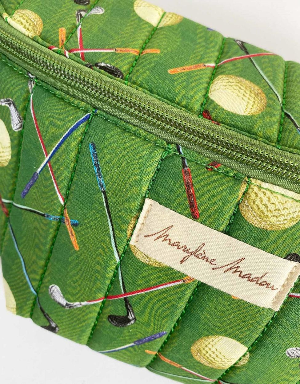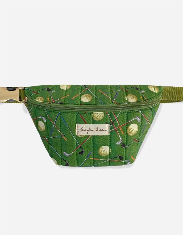 Een tijdloos model in doorgestikt katoen, bedrukt met de The Golf Season print — een ritmisch patroon uit Marylène’s archief van handgeschilderde motieven. De print speelt met herhaling en rust, een zachte grafiek die meteen herkenbaar is. Het tasje heeft een minimalistische vorm, maar een doordachte indeling met een hoofdvak en een extra binnenzak met rits. De verstelbare katoenen band laat zich comfortabel dragen rond de heup of over de schouder. Een functioneel accessoire met de artistieke signatuur van Marylène Madou: rustig, verfijnd en altijd met een twist.