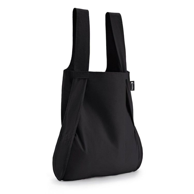 Notabag is de slimme combinatie van een tas en een rugzak. Het transformeert met een enkele trek aan de bandjes, zodat je het op je rug kunt dragen en je handen vrij hebt.