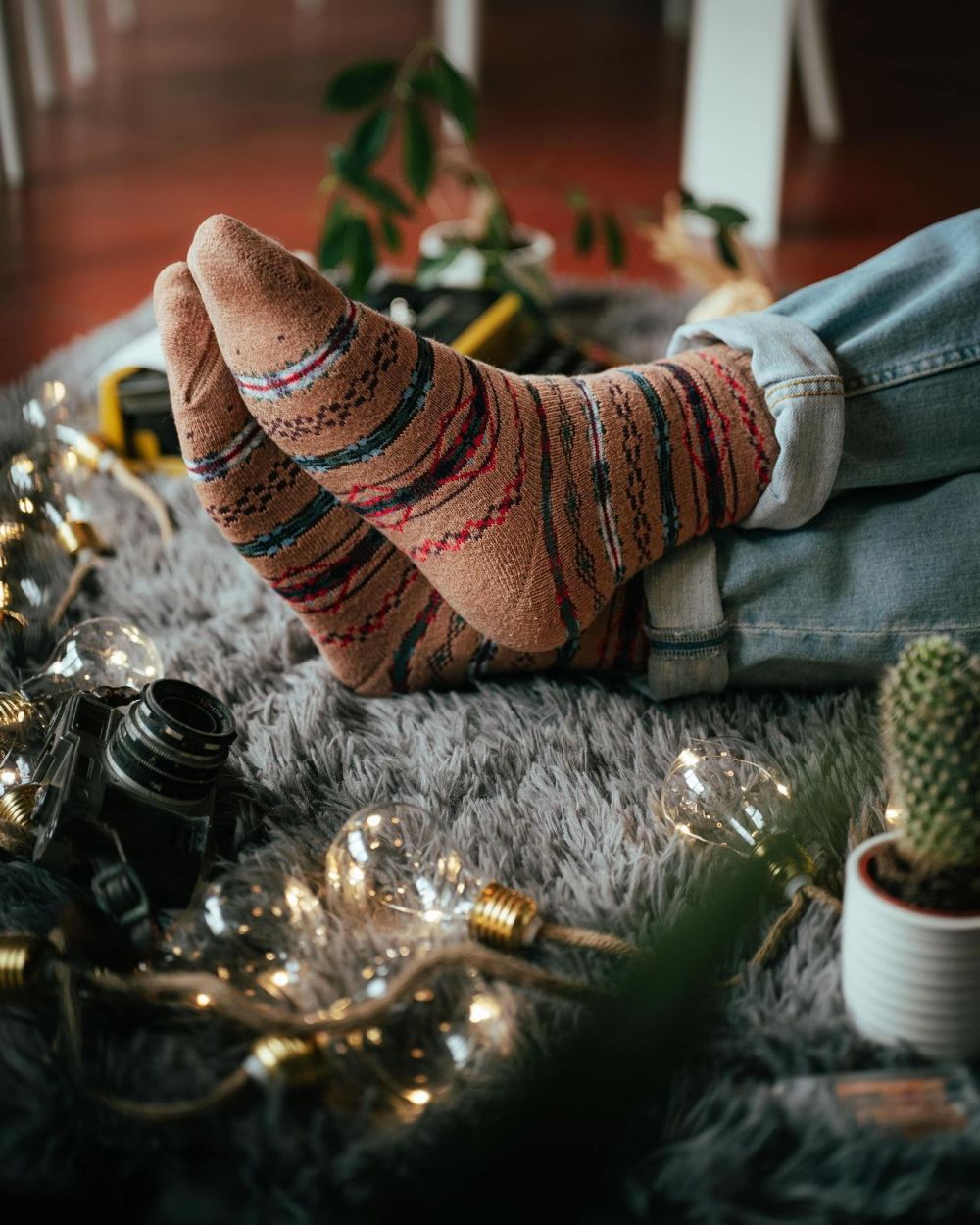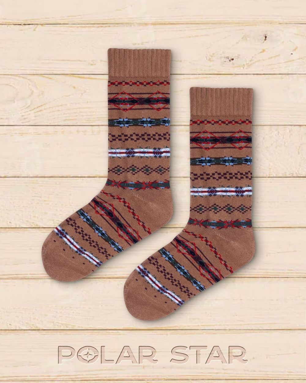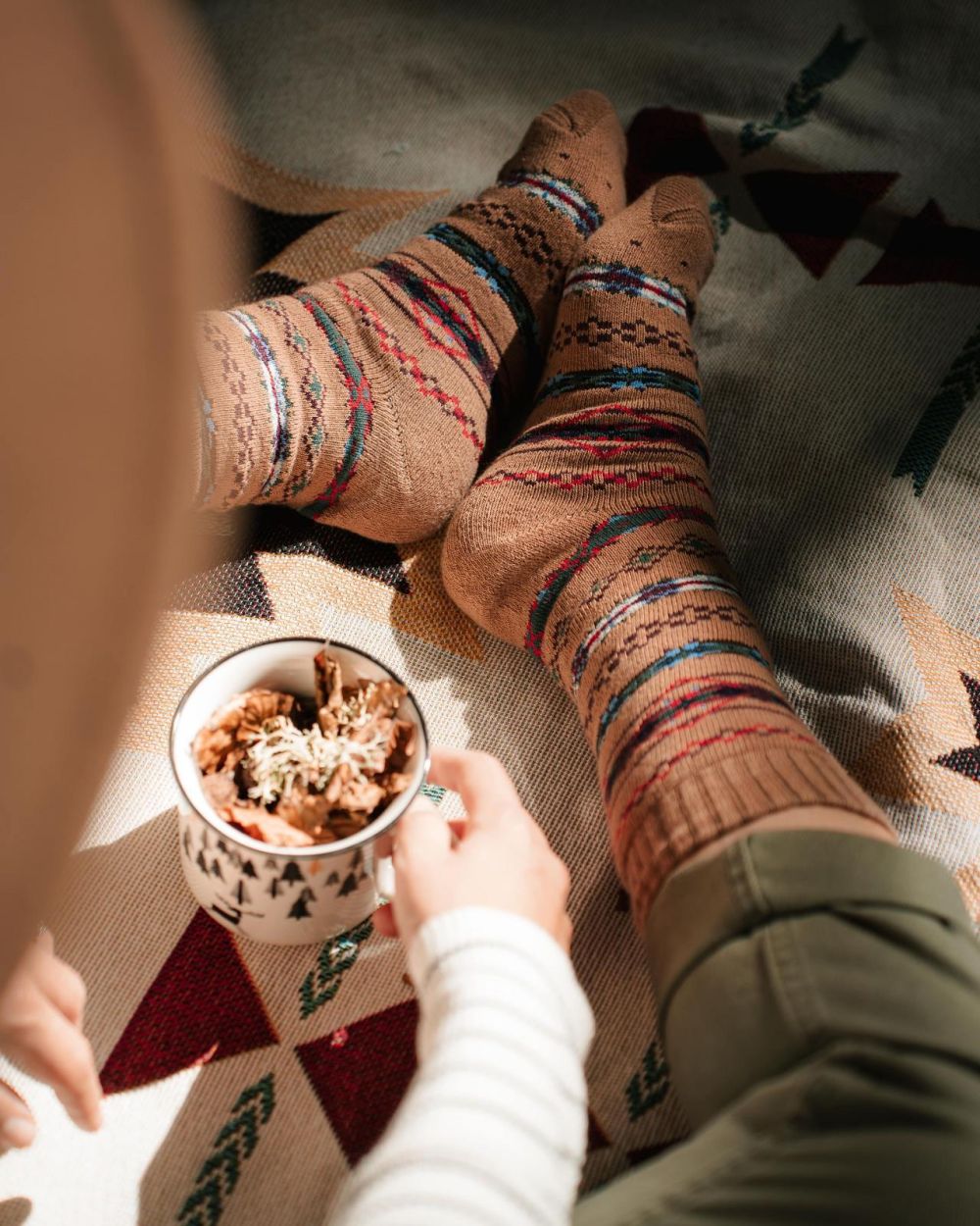 Een reis door eeuwenoude Scandinavische patronen ontvouwt zich in het Kjell-ontwerp. Met aardse beige tinten en traditionele bloemen- en geometrische motieven ademt het erfgoed en vakmanschap. Als een vintage trui die van generatie op generatie wordt doorgegeven, omhult Kjell je voeten met warmte en stille kracht.