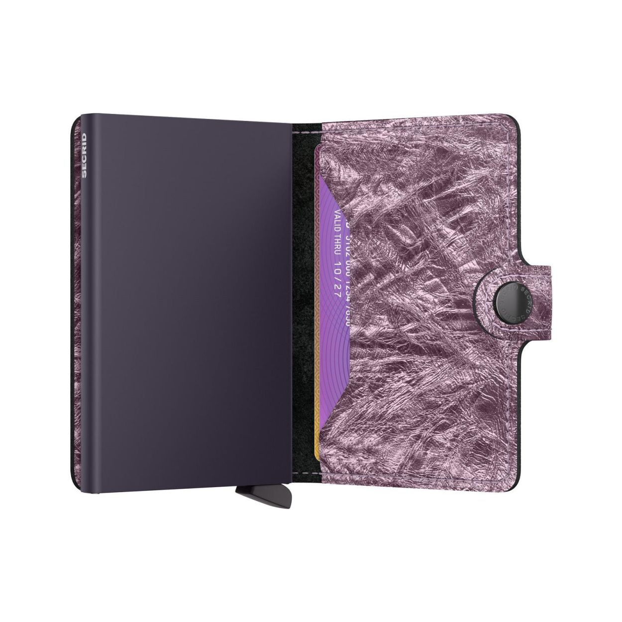Klein van formaat en verrassend groot in opslagcapaciteit. De Miniwallet combineert het beste van twee werelden. De omhulsel bevat bankbiljetten, bonnetjes en kaarten, terwijl de aluminium Cardprotector het mogelijk maakt om kaarten met één simpele beweging uit te schuiven en ze te beschermen tegen buigen, breken en ongewenste draadloze communicatie (RFID-safe).