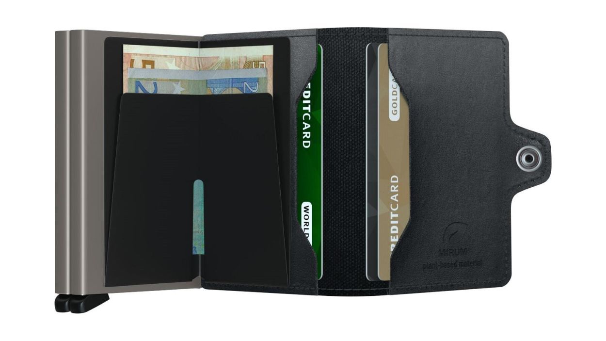 Uitgerust met twee Cardprotectors biedt de Twinwallet ruimte voor 16 kaarten, bankbiljetten en bonnetjes. De grootste wallet, maar nog steeds compact van formaat. Samen met een stevige sluiting en omhulsel om extra kaarten, bankbiljetten en bonnen op te bergen, kan de Twinwallet veel kwijt, maar blijft het compact van formaat.
